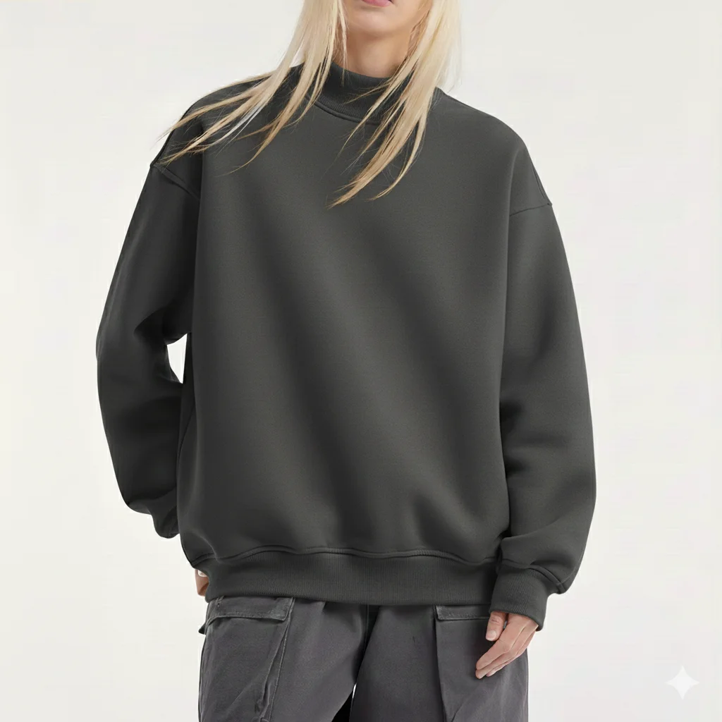 Women's Winter Casual Fleece Mock Neck Sweater-Polyester/Cotton Blend Quick Dry Solid Pattern Full Sleeves 380g Fabric