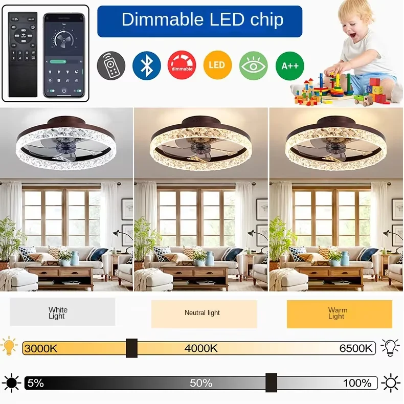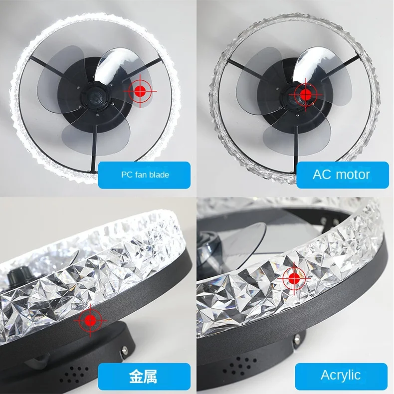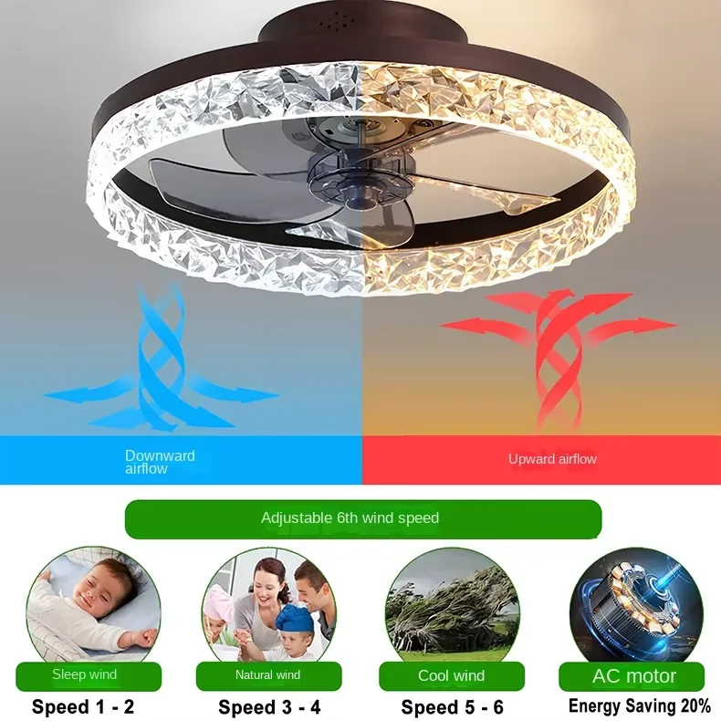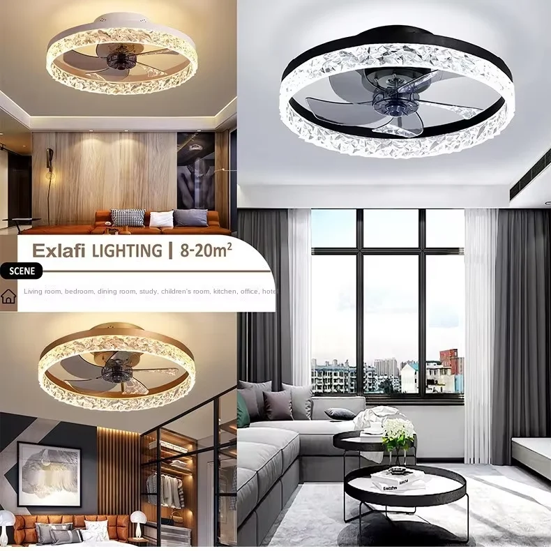 JACKSUN 20" Modern Acrylic Ceiling Fan with Lights and Remote Dimmable Low Profile Ceiling Fans 6 Speeds Black White for Bedroom