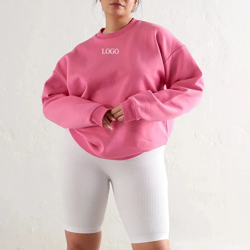 Custom Logo Polyester / Cotton O-Neck Winter Knitted Sweatshirts Ladies Embroidery Heat-Transfer Printing Women's Hoodies