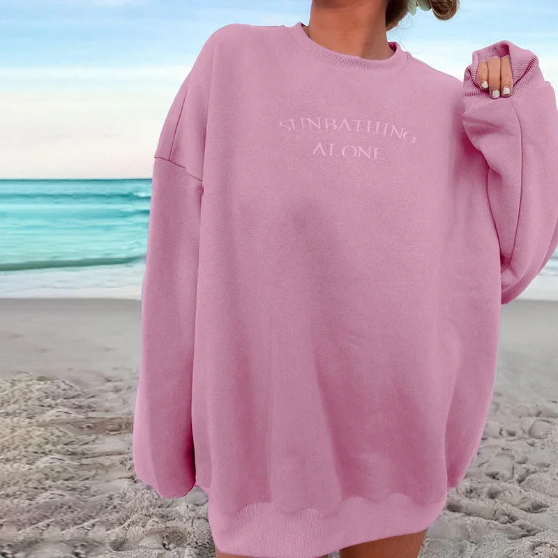 Winter Casual Style Women's Knitted Long Sleeve Pullover Embossed Front O-Neck Collar Solid French Fleece Breathable