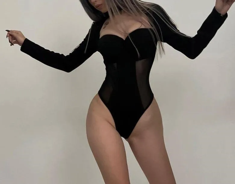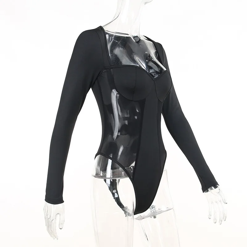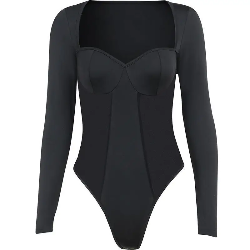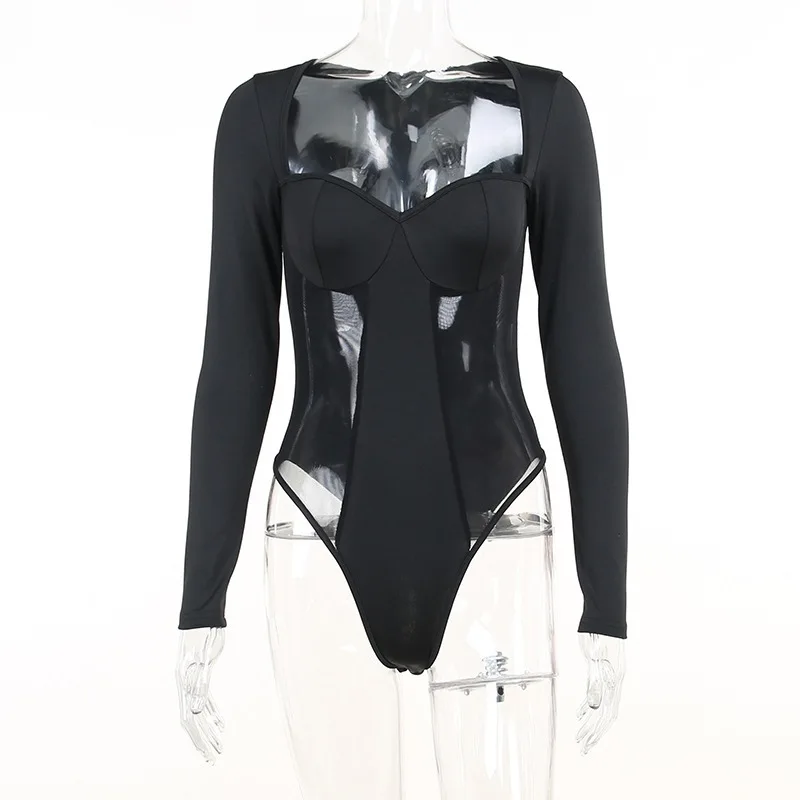 2026 Summer Hot New Sexy Perspective square Collar Splicing Long Sleeve Women's Onesie Custom Manufactured Clothing
