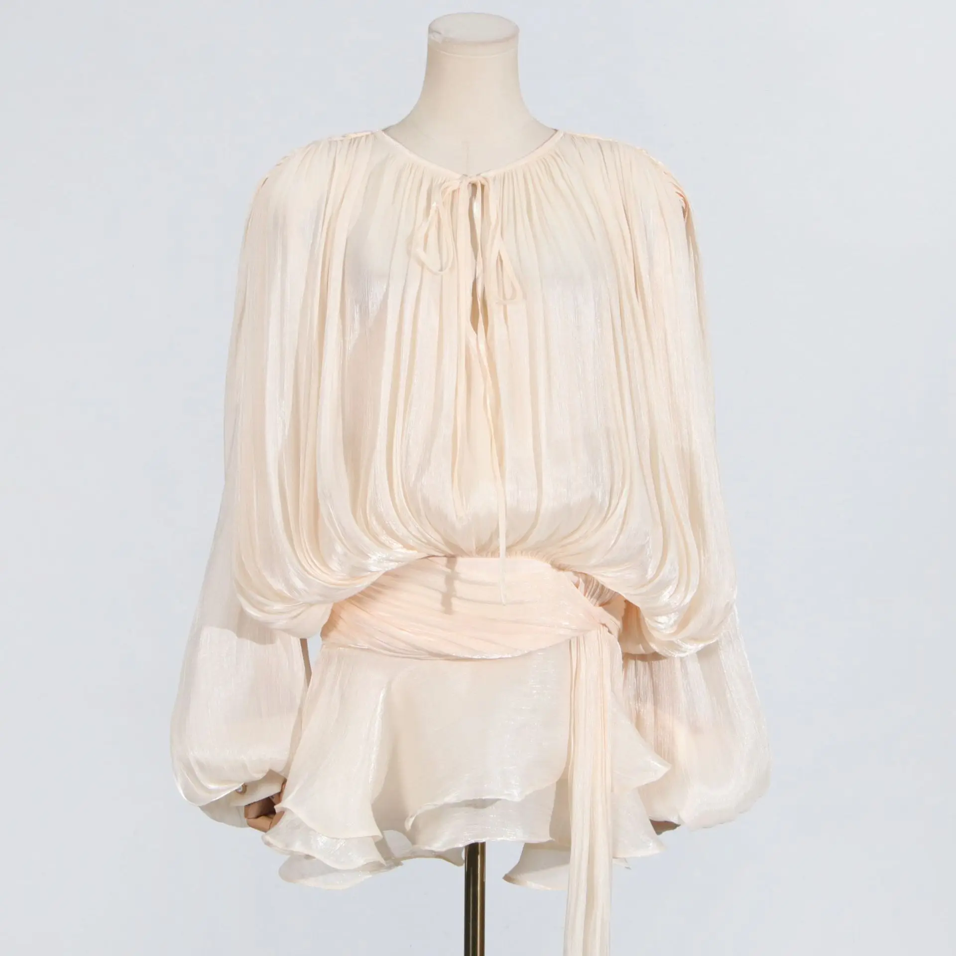 2026 New European American Style Sexy Sweet Spicy Dress Loose Lazy Long-Sleeved Ribbon Lace-Up Slim Short Cotton Spring