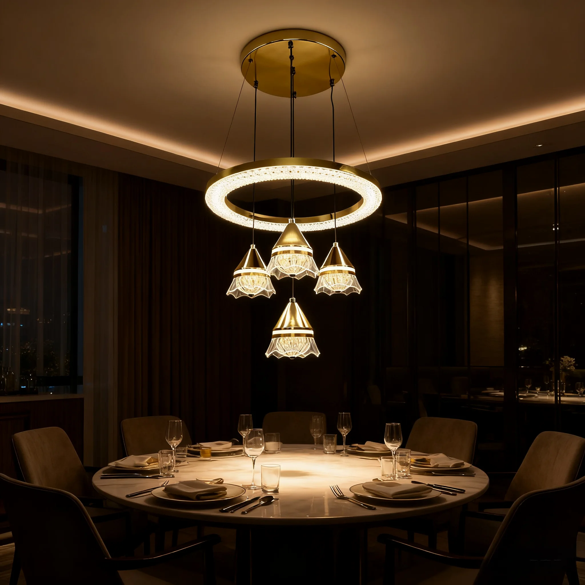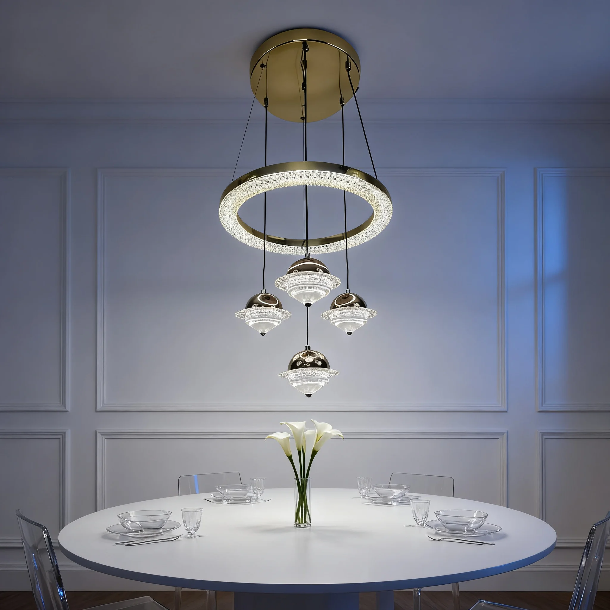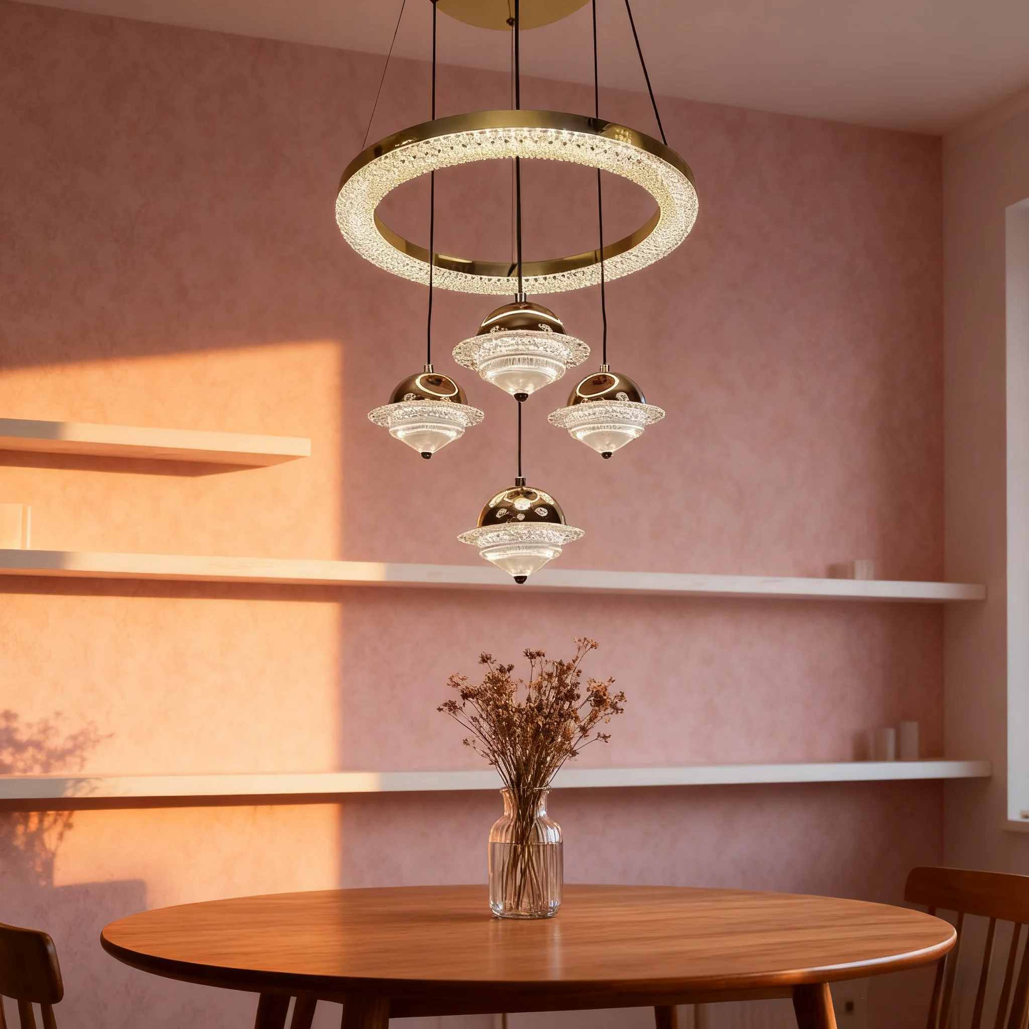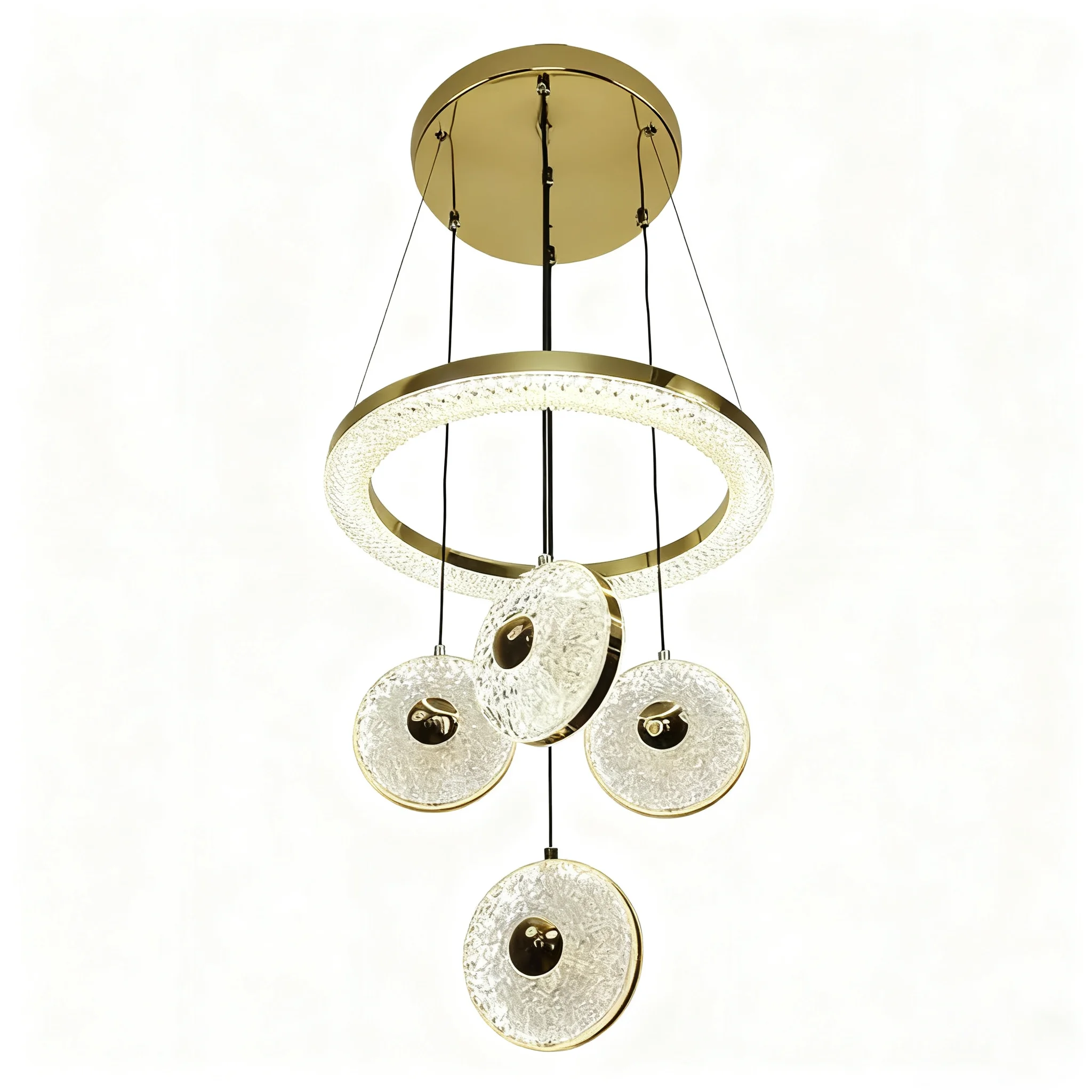 JACKSUN 4 Lights Modern Acrylic LED Dimmable Chandelier Contemporary Gold Hanging Ceiling Pendant Light for Dining Restaurant