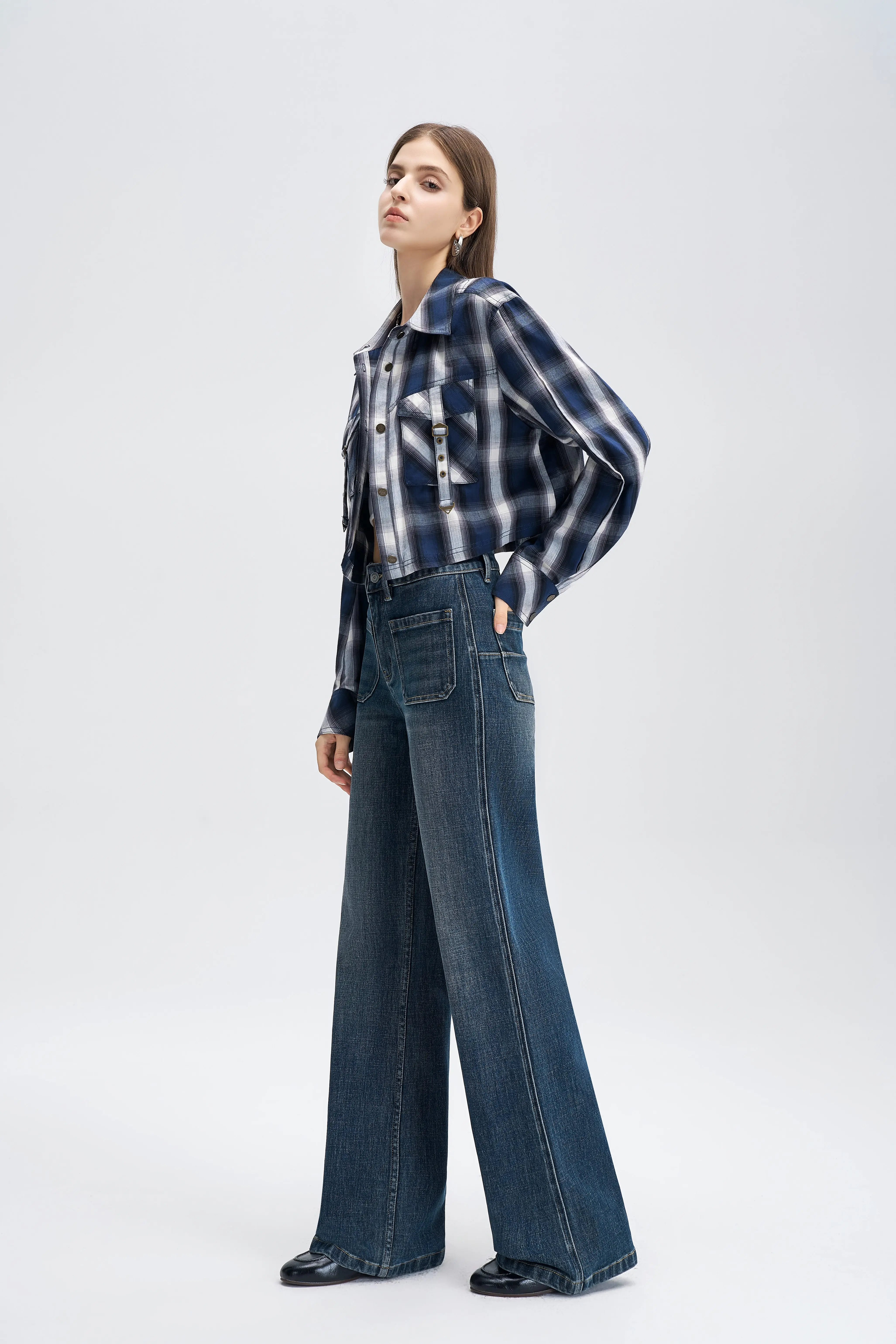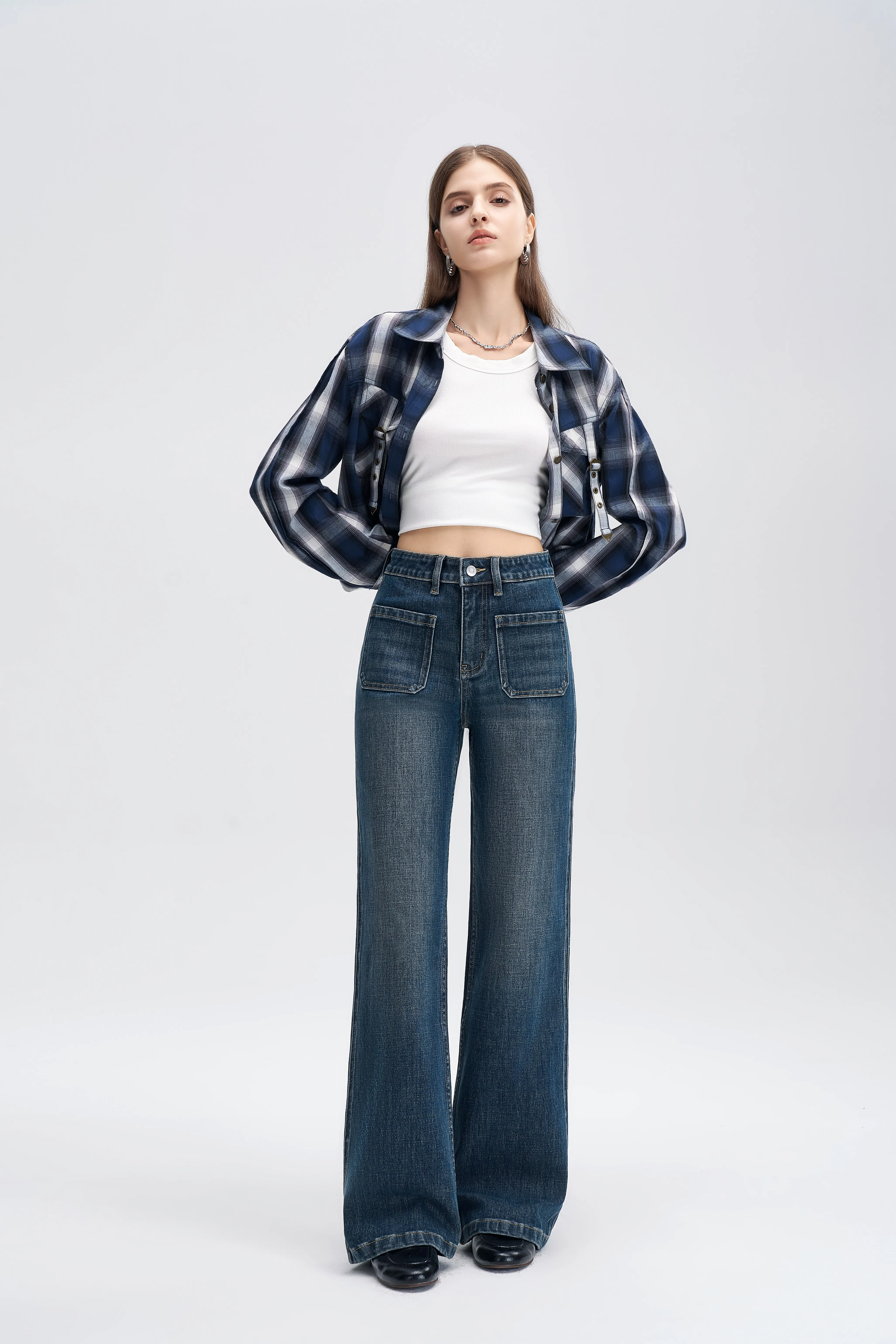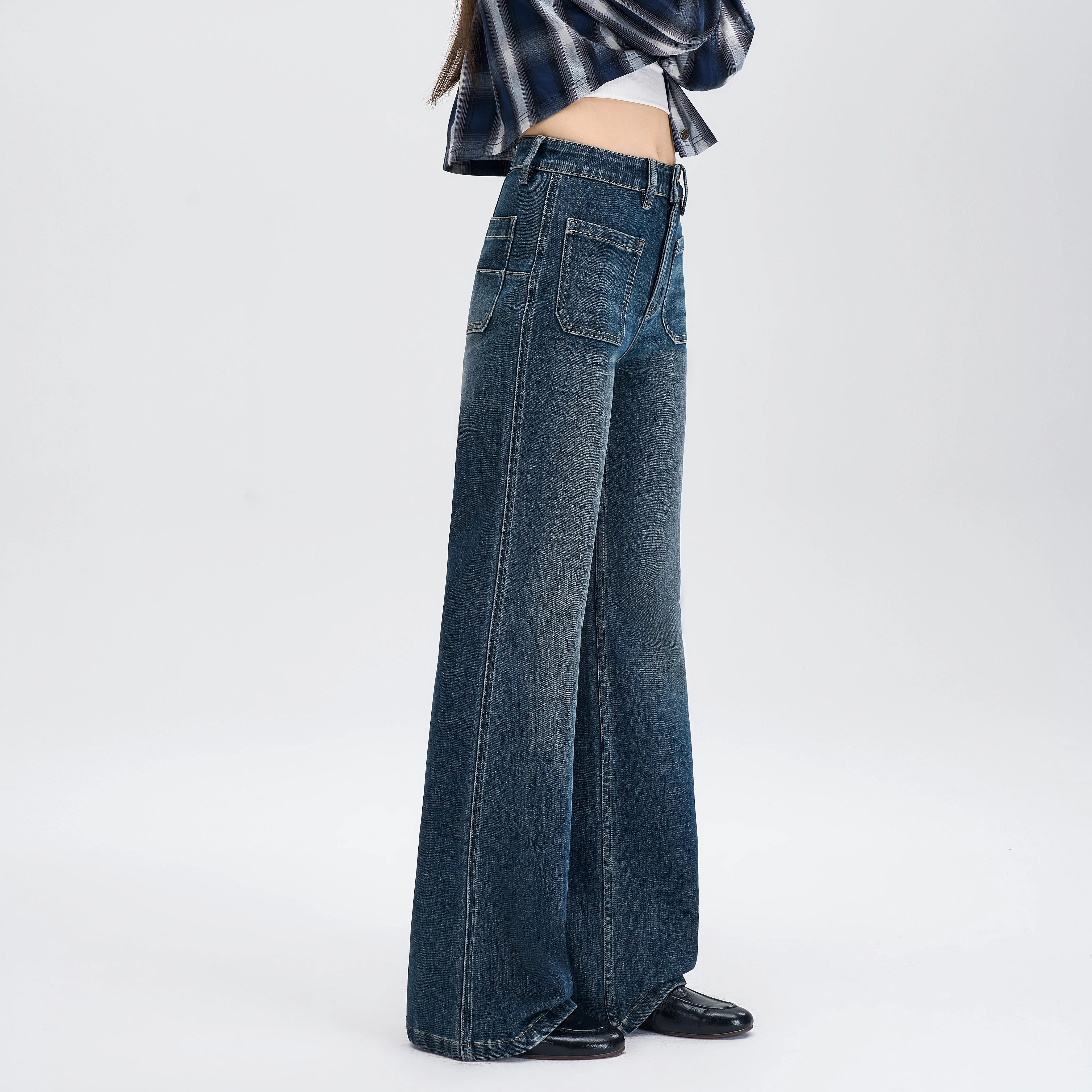 Trendy Knee Panel Baggy Jeans Women High Waisted Black Wash Denim Loose Fit Straight Leg Utility Trousers Grunge Style