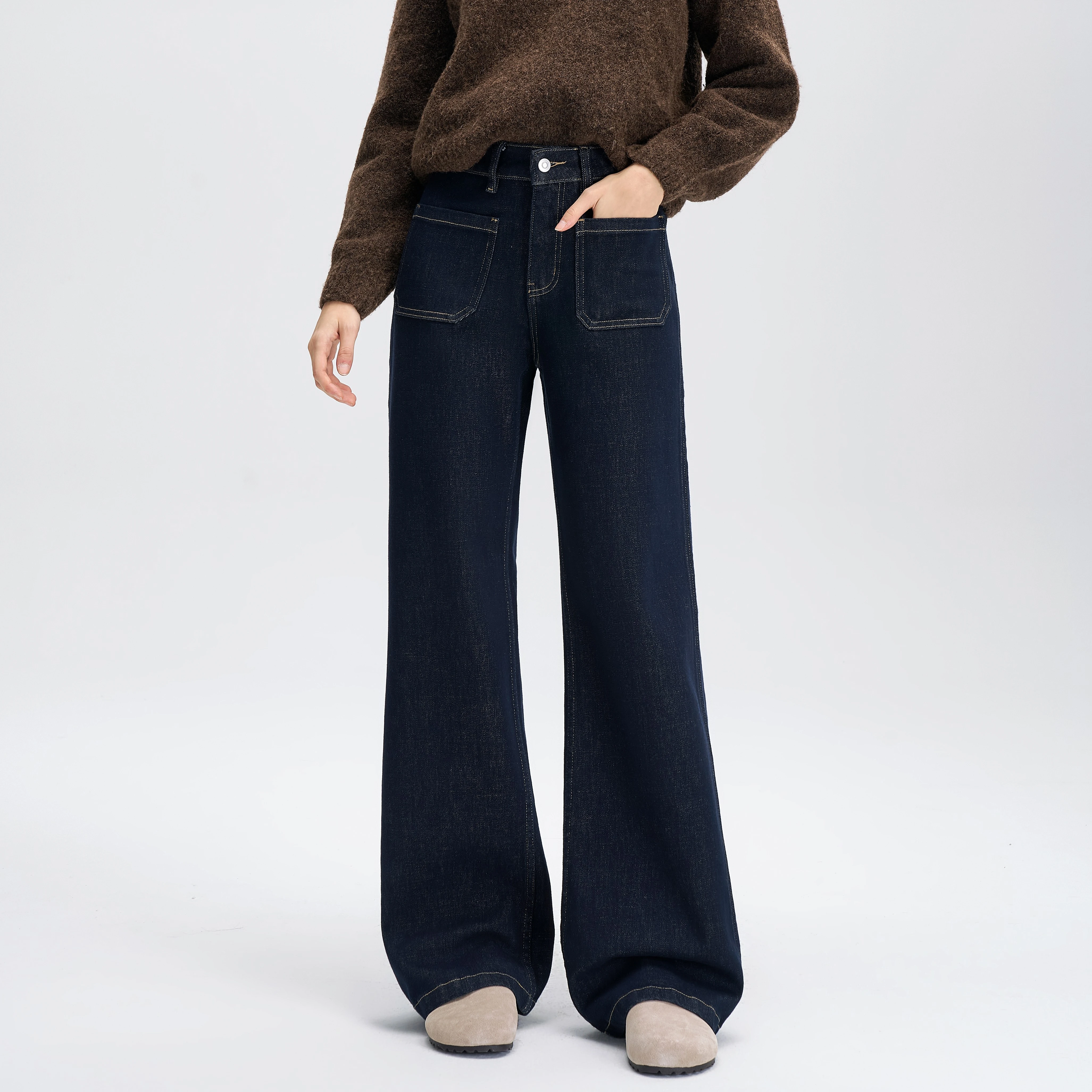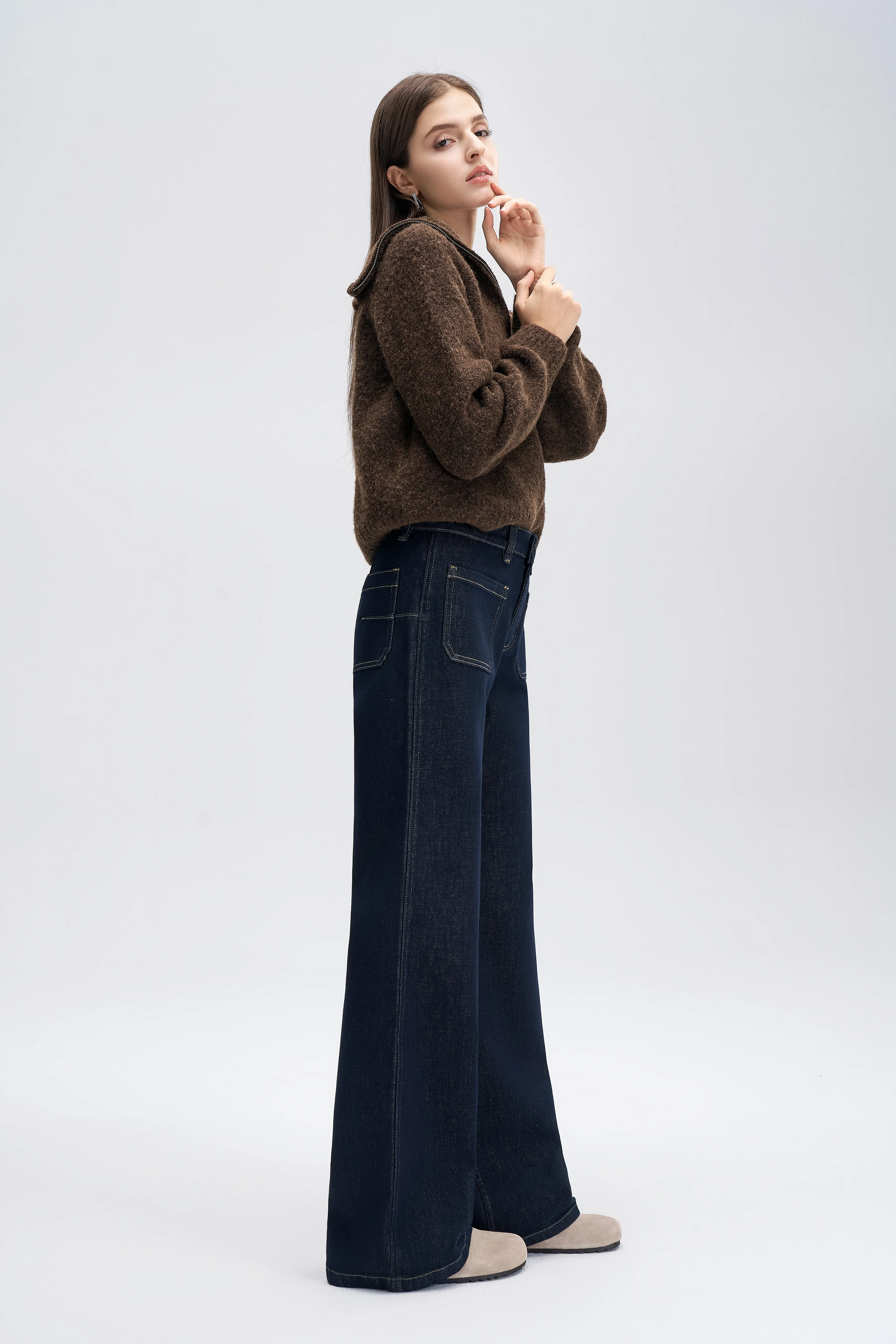 Wholesale Fashion 2026 Fall Tall Waist Street Style Open Crotch Wide Leg Pants Women Jeans