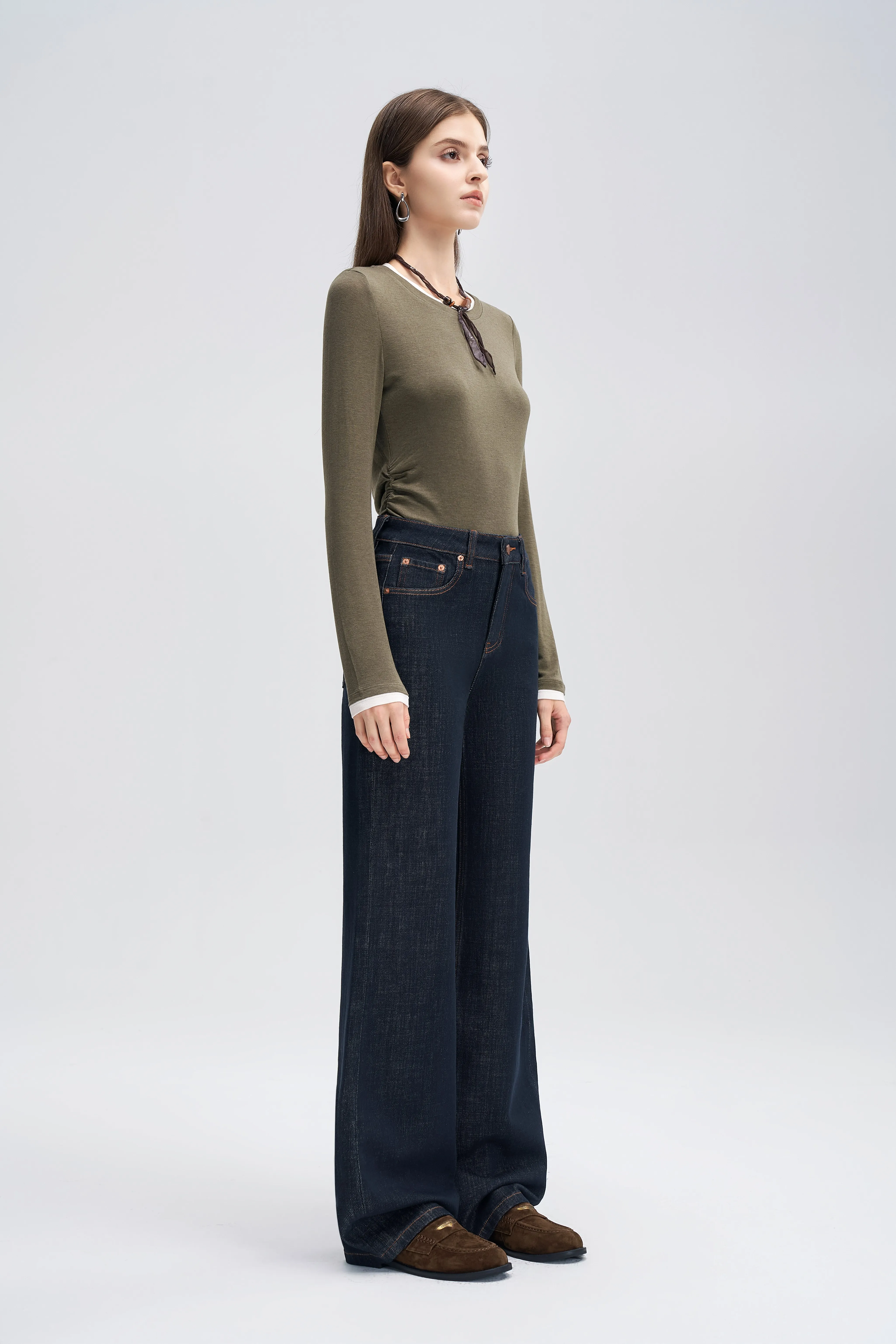 ZYHT 73849 European Wholesale Fashion Casual One Shoulder Ruched Maxi Dress Side Slit Pleated Long Sleeve Dresses for Women