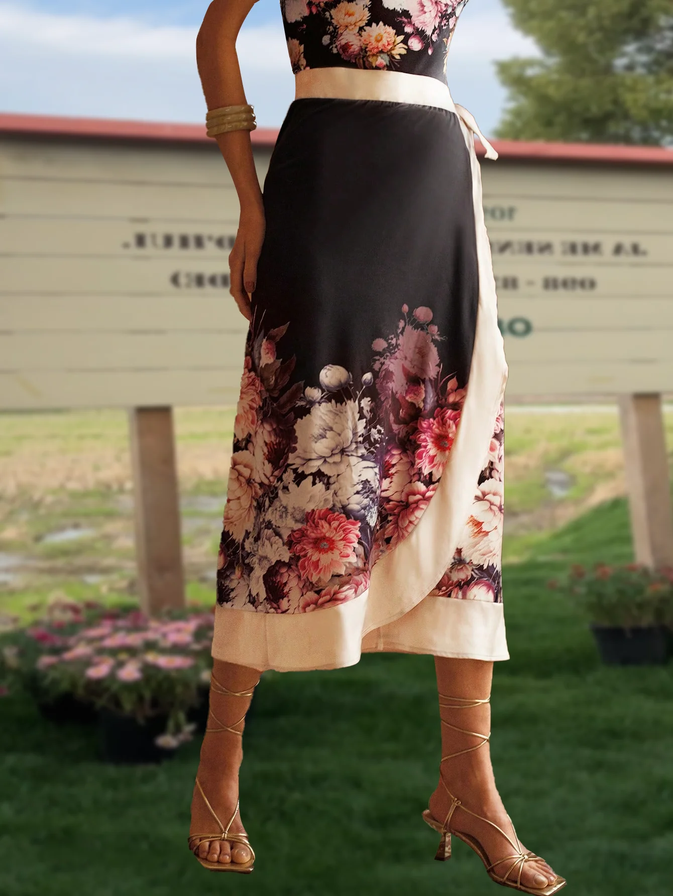ZYHT 73957 Hot Selling Women Lady Printed Satin Beige Mermaid Fish Tail Floor Length Party Cocktail Evening Dress Gown