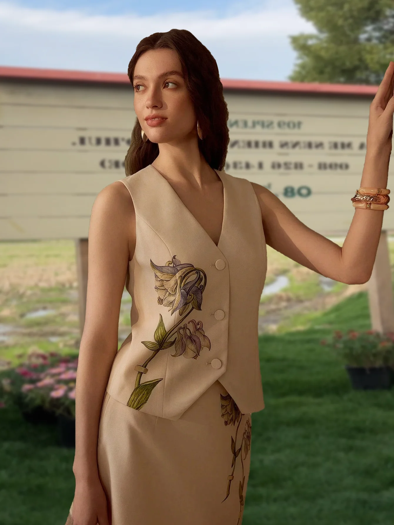 ZYHT 73957 Hot Selling Women Lady Printed Satin Beige Mermaid Fish Tail Floor Length Party Cocktail Evening Dress Gown