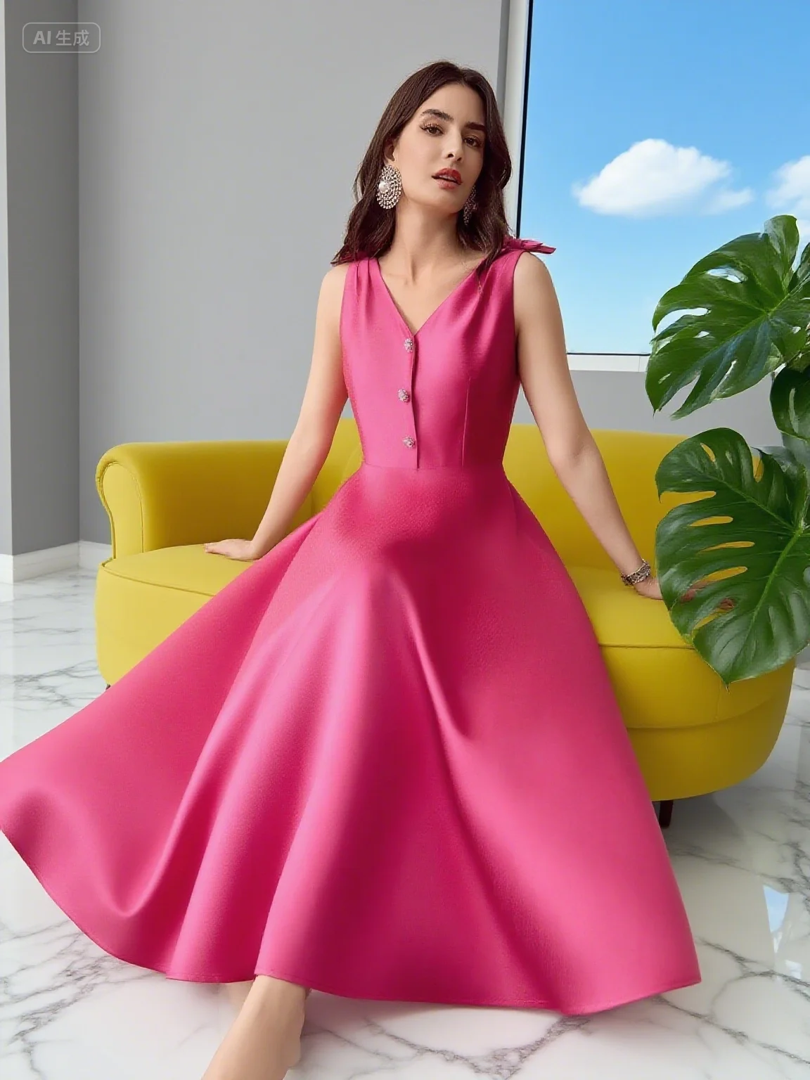 ZYHT 73571 Custom Elegant V-Neck Cape Sleeve Dresses Trendy Straight Yellow Maxi Party Gowns Modest Evening Dress for Women