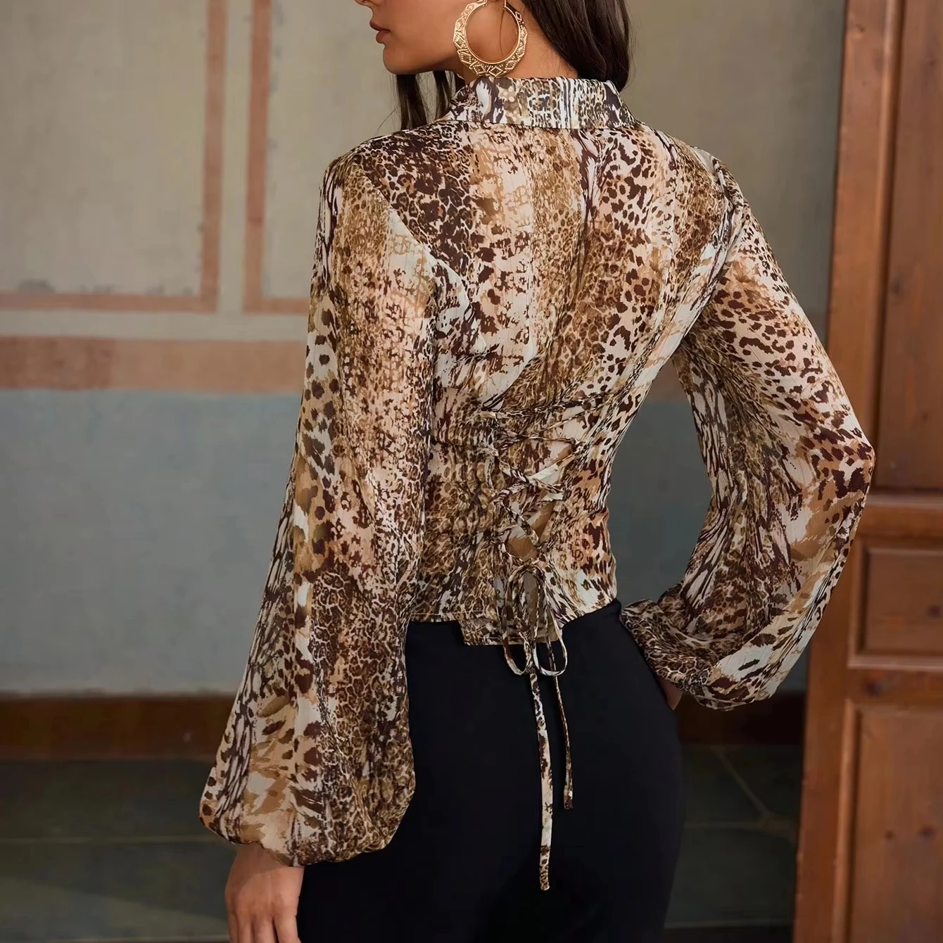 ZYHT 35239 Women's Elegant Black Velvet Blazer with White Ruffled Trim Peplum Hem & Long Puff Sleeves Chic Formal Jacket