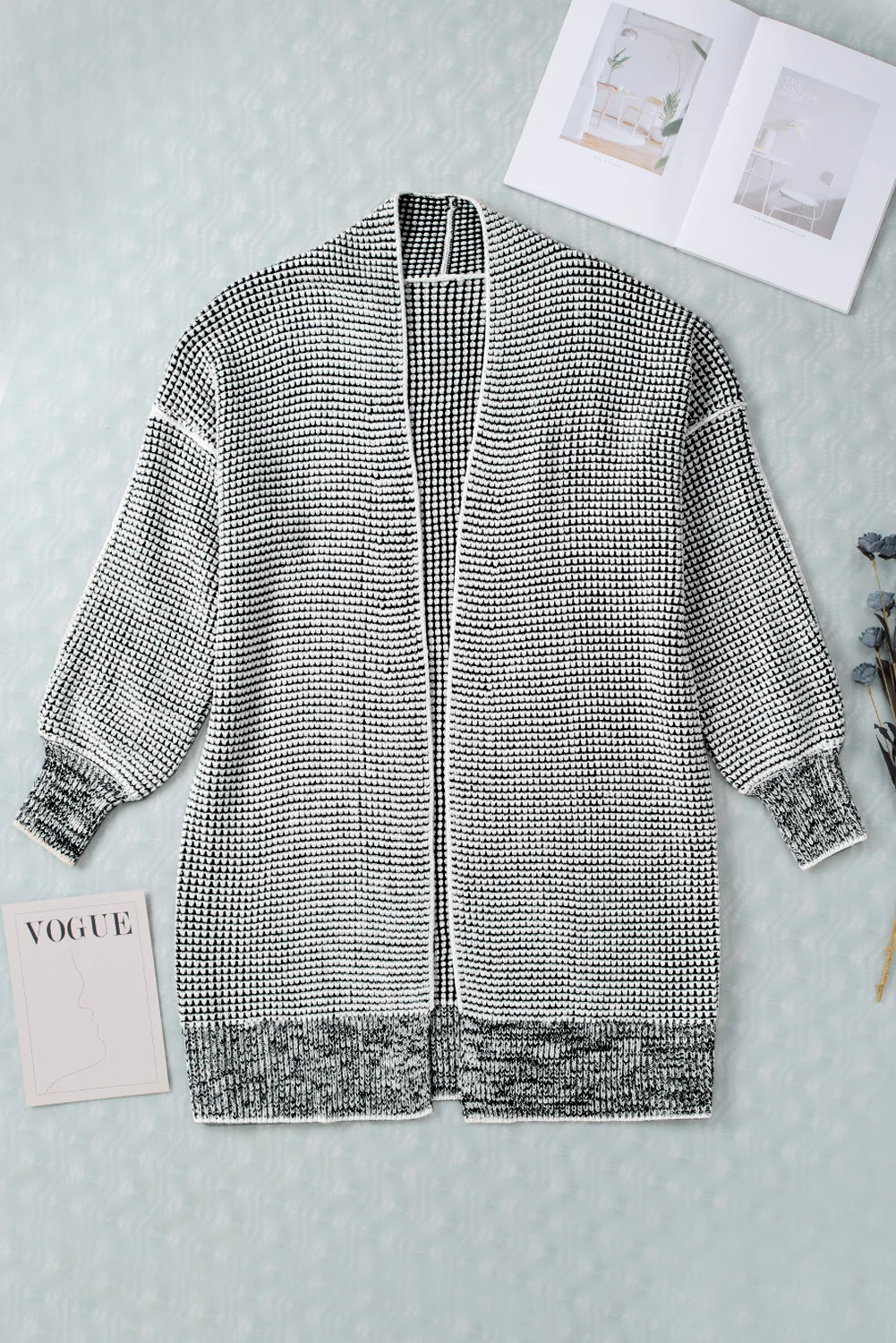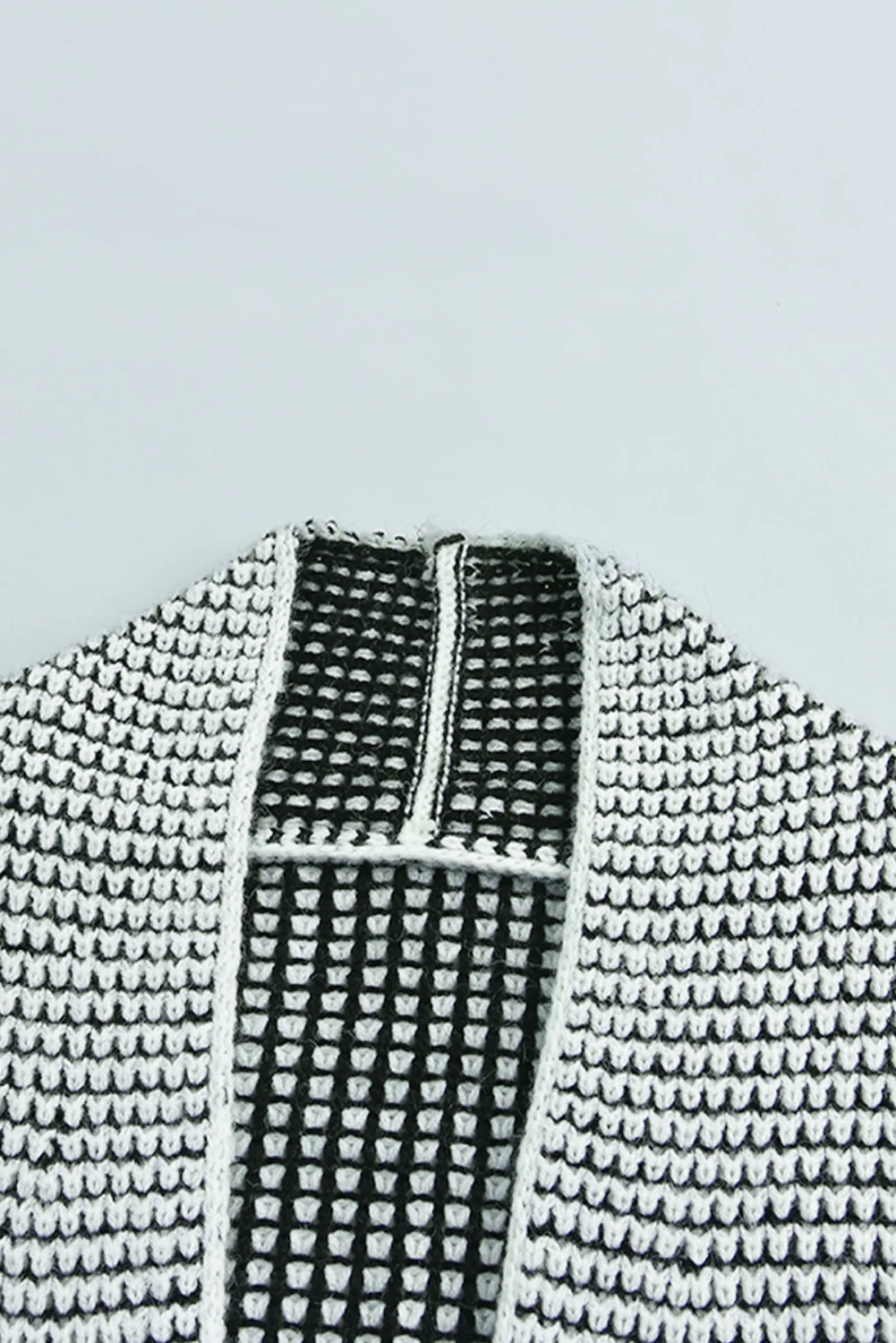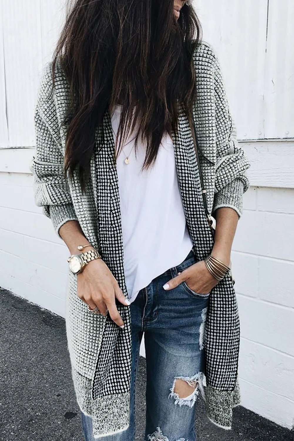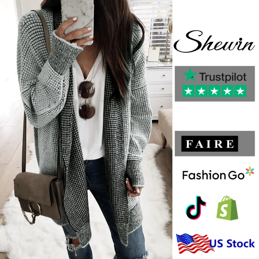 Shewin 2026 Autumn Casual Plaid Breathable Computer Knitted Long Open Front Cardigan for Women