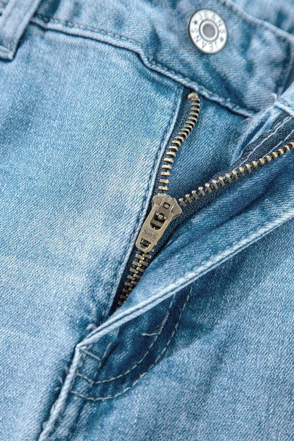 Shewin 2026 Breathable High Rise Shift Slit Leg Straight Light Blue Denim Jeans for Women Casual Summer