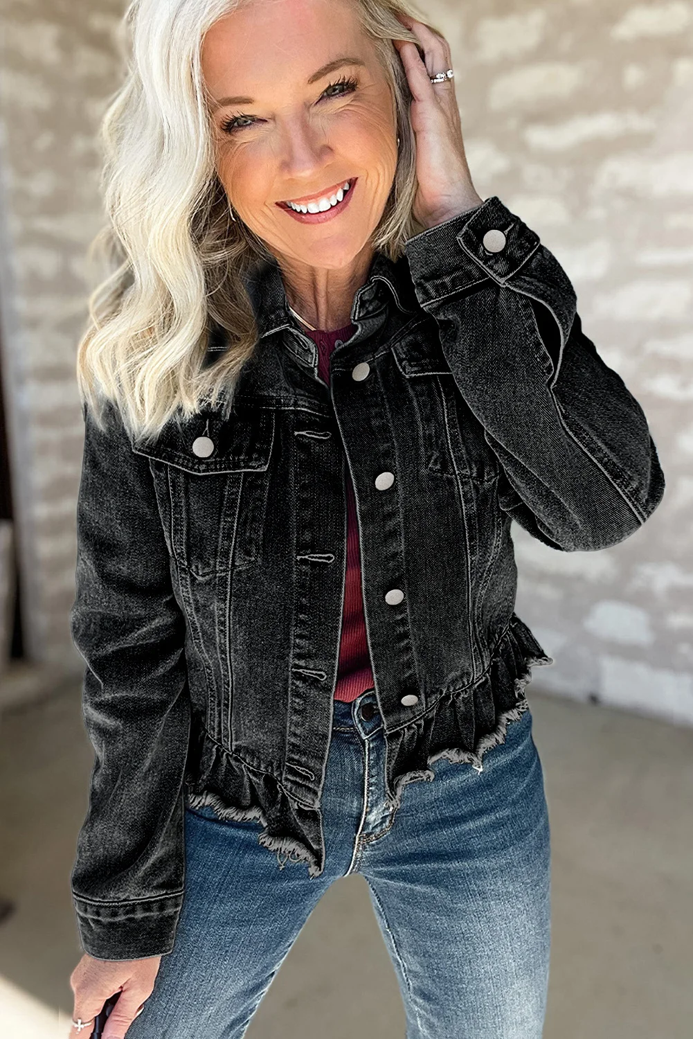 2026 New Arrivals Autumn Winter High Quality Boutique Breathable Long Sleeve Button Rivet Women Vintage Denim Motorcycle Jackets
