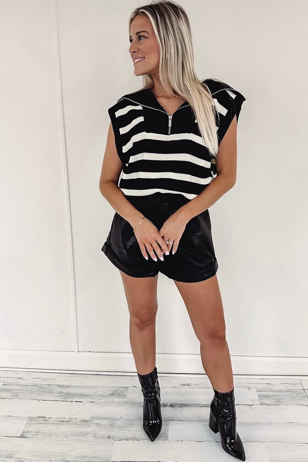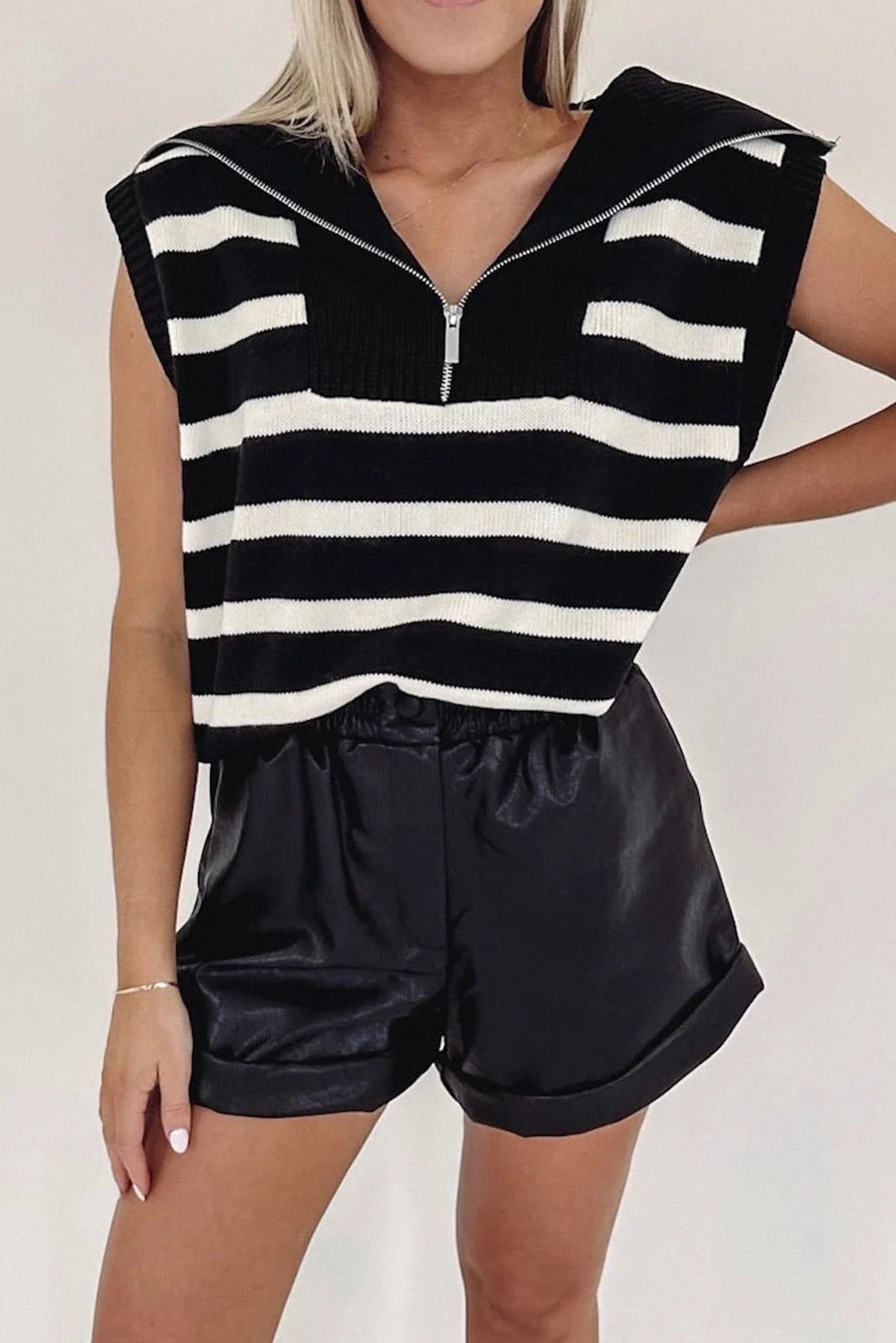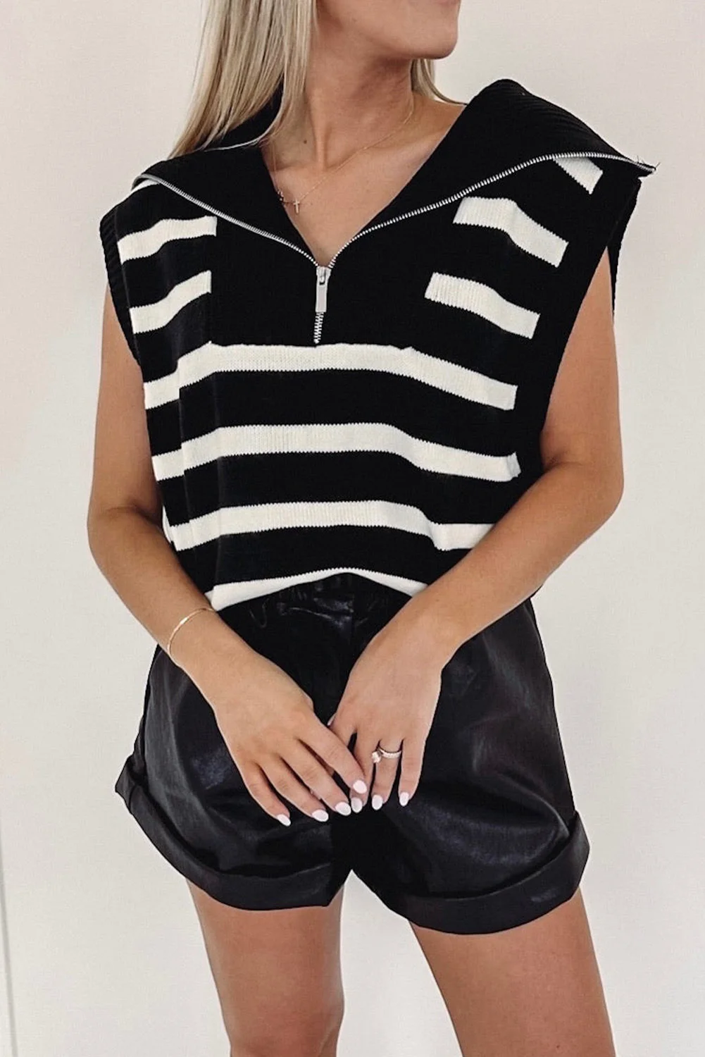 2026 Shewin Boutique Women Clothing Wholesale Summer Casual Breathable Simple Black Stripe Zipped Collar Knit Shirt
