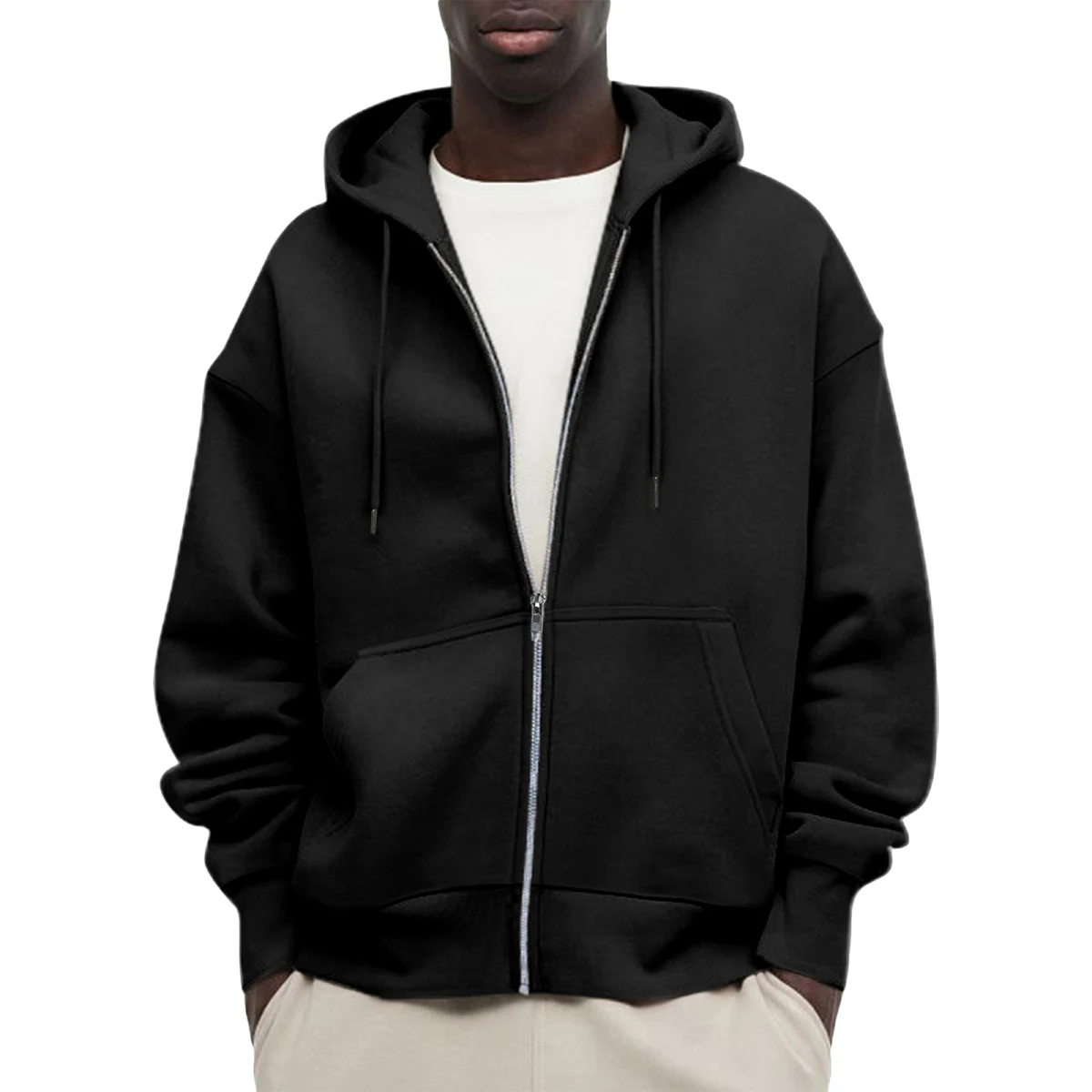 Shewin 2026 Men's Casual Top with Long Sleeves Solid Zipper Black Pullover Sweatshirts for Autumn Digital Printing