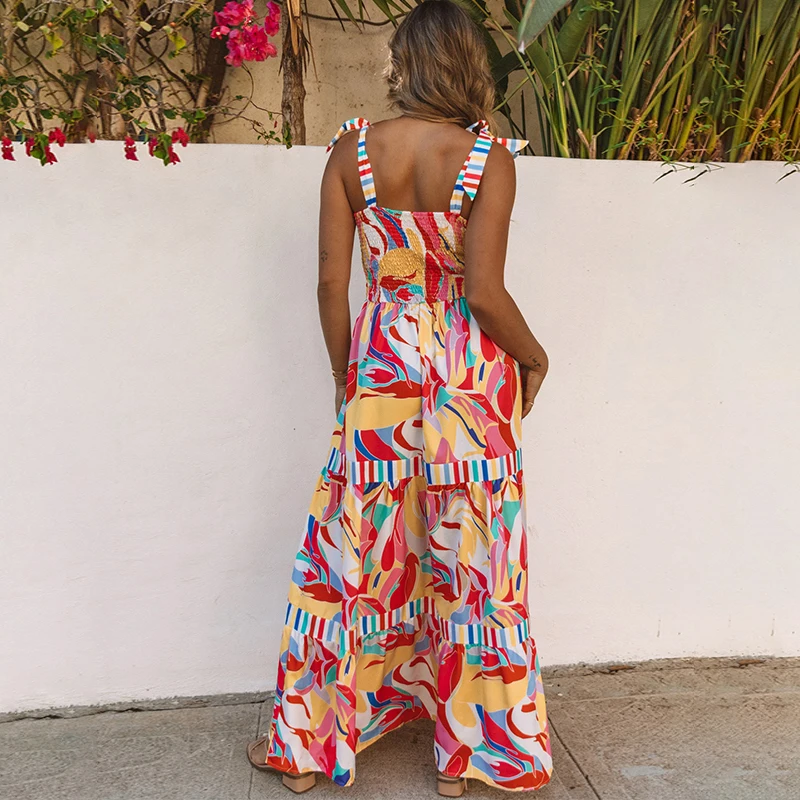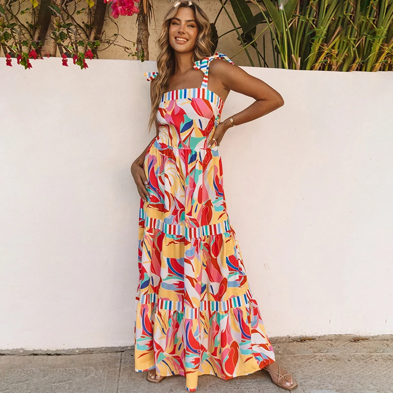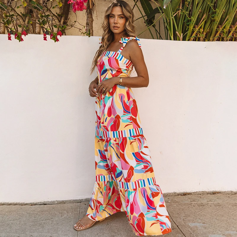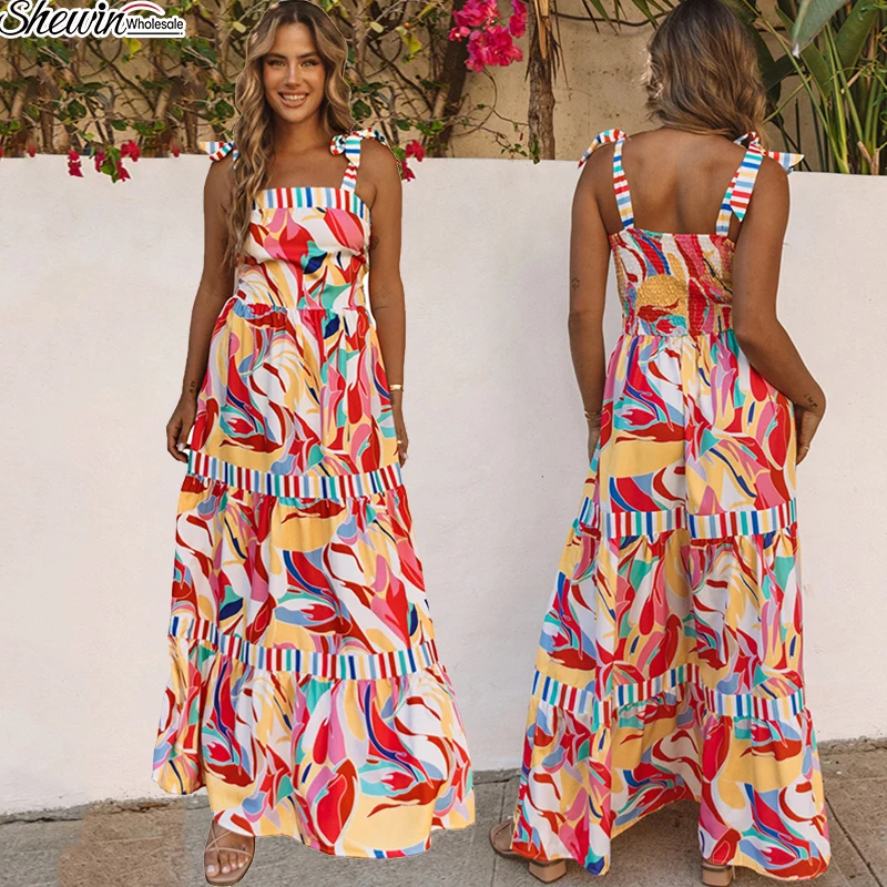 Shewin Women's 2026 Summer Sundress Casual Sexy Vintage Floral Print Ruffle Breathable Collarless
