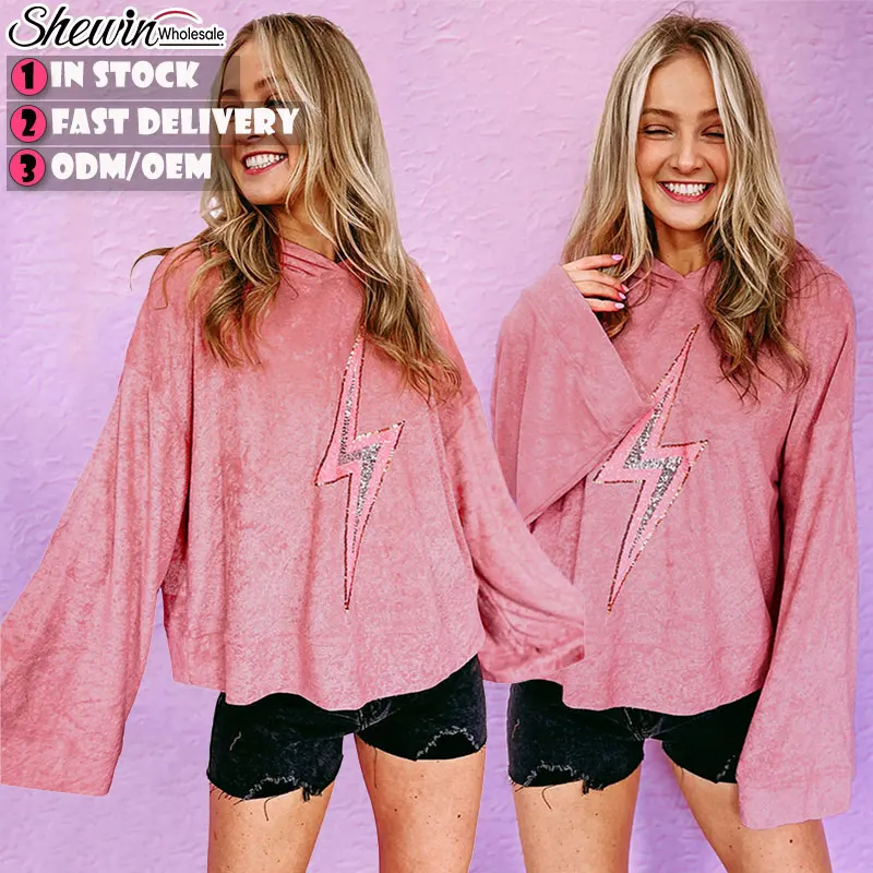 Hot Sales 2026 Y2k Casual Stylish Women Lined Knitted Autumn Printed Sequin Plain Rhinestone Oversized Hoodies