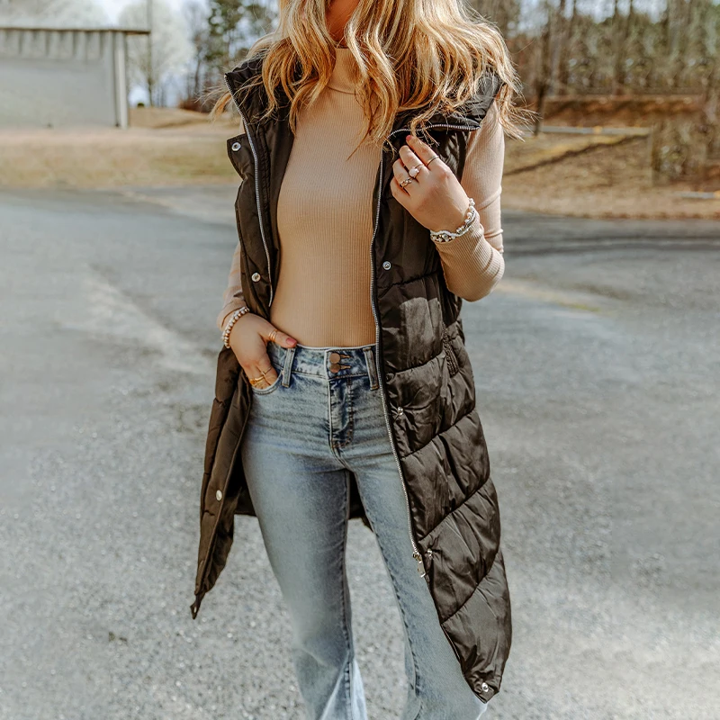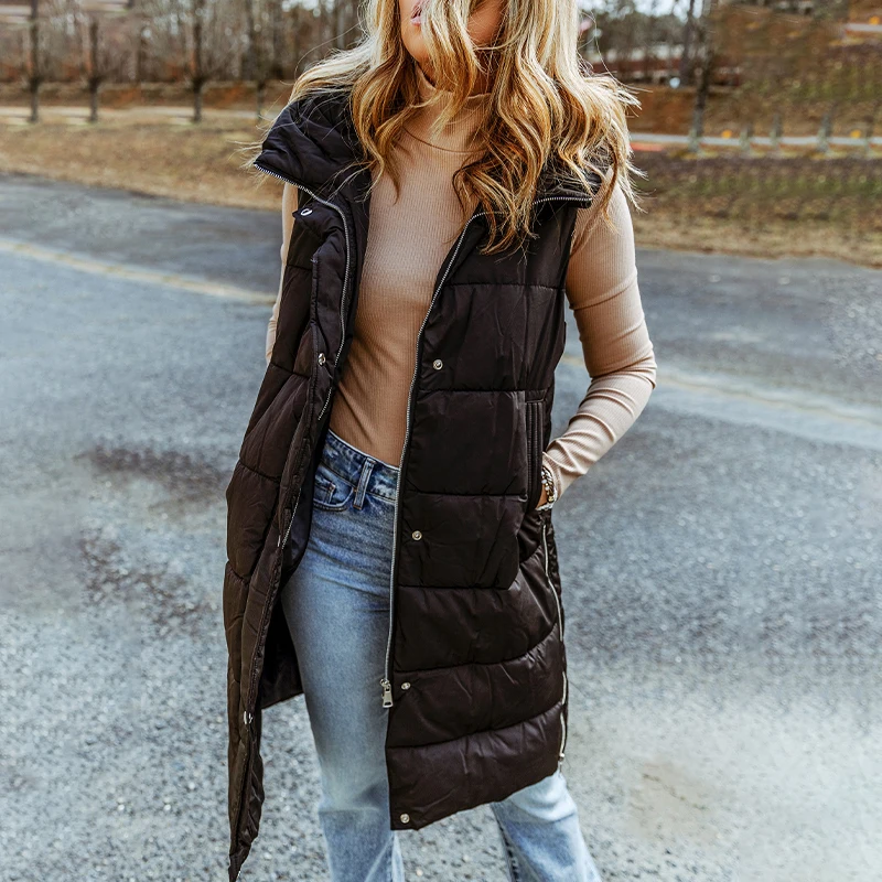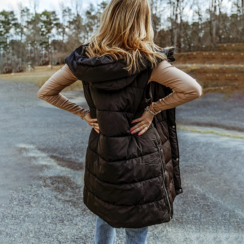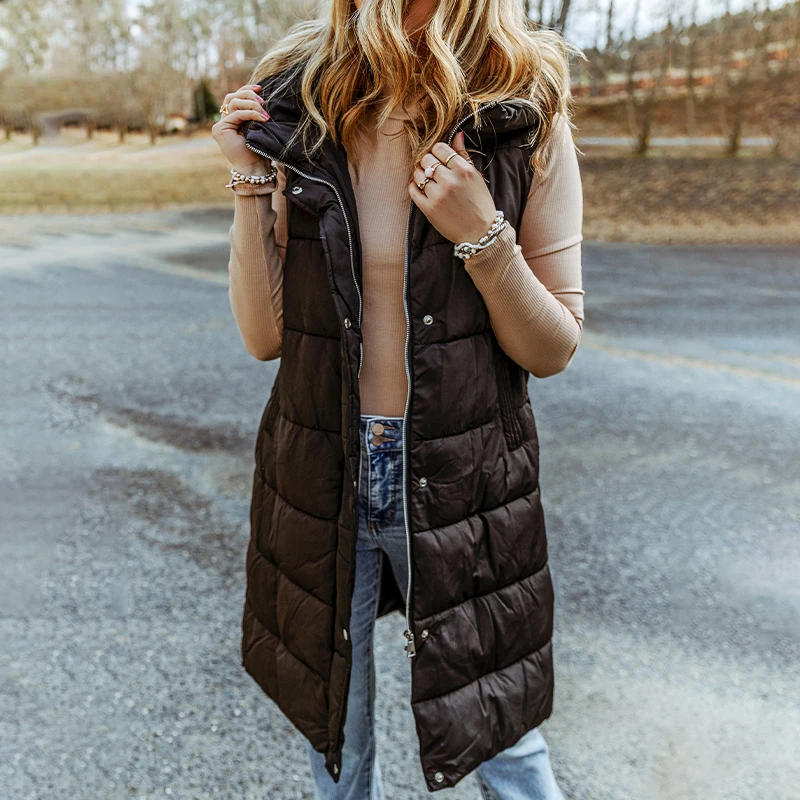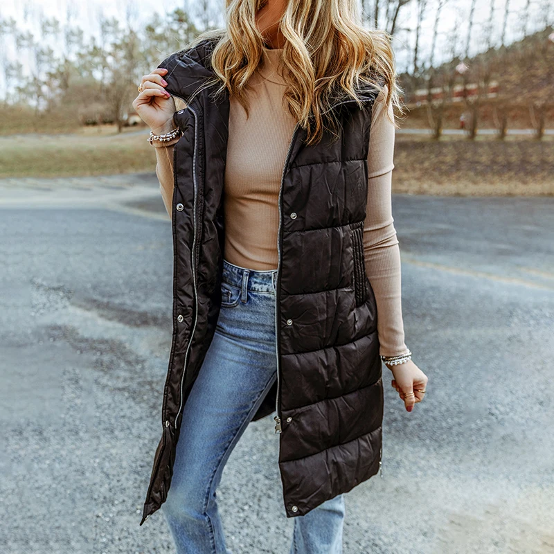 2026 Winter Fashion Casual Women's Hooded Long Coat Solid Color Knitted Vests with Pockets