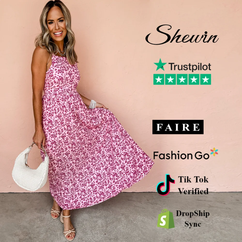 Shewin Clothing 2026 Women's Pink Floral Cutout Back Empire Waist Sleeveless Summer Maxi Dress