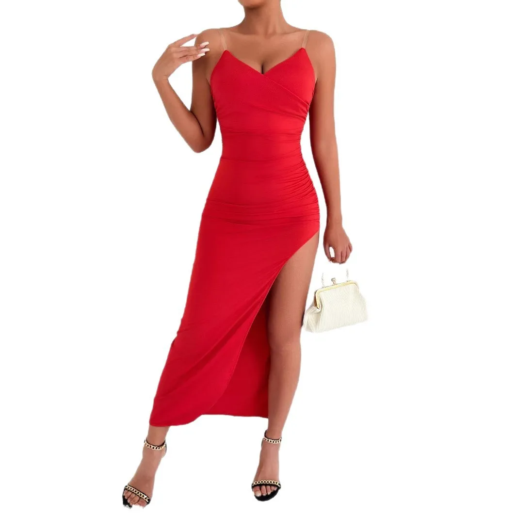 Hot Summer Women's Size Camisole Slim Fit Solid Color Sleeveless Long Dress Party Backless Sexy Slit Fashion Party
