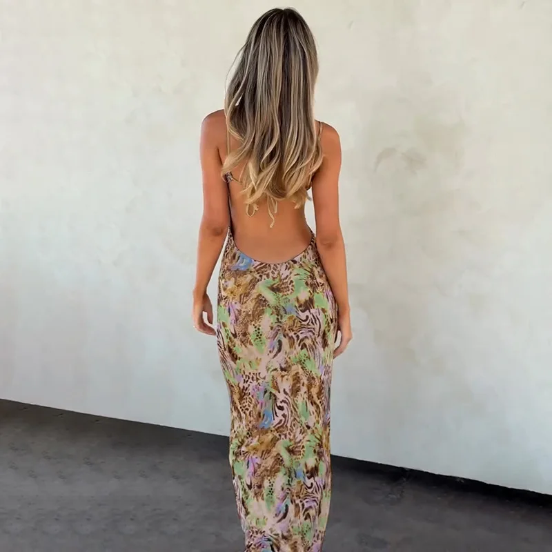 2026 Summer New Women's Fashion Low Cut Sexy Suspender Dress Long Skirt Slim Fit Dress