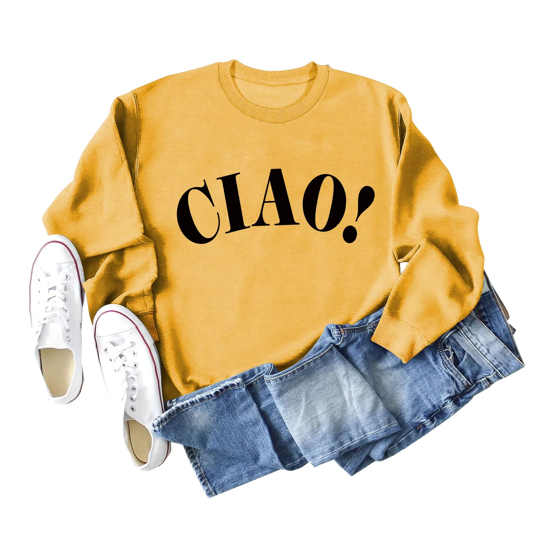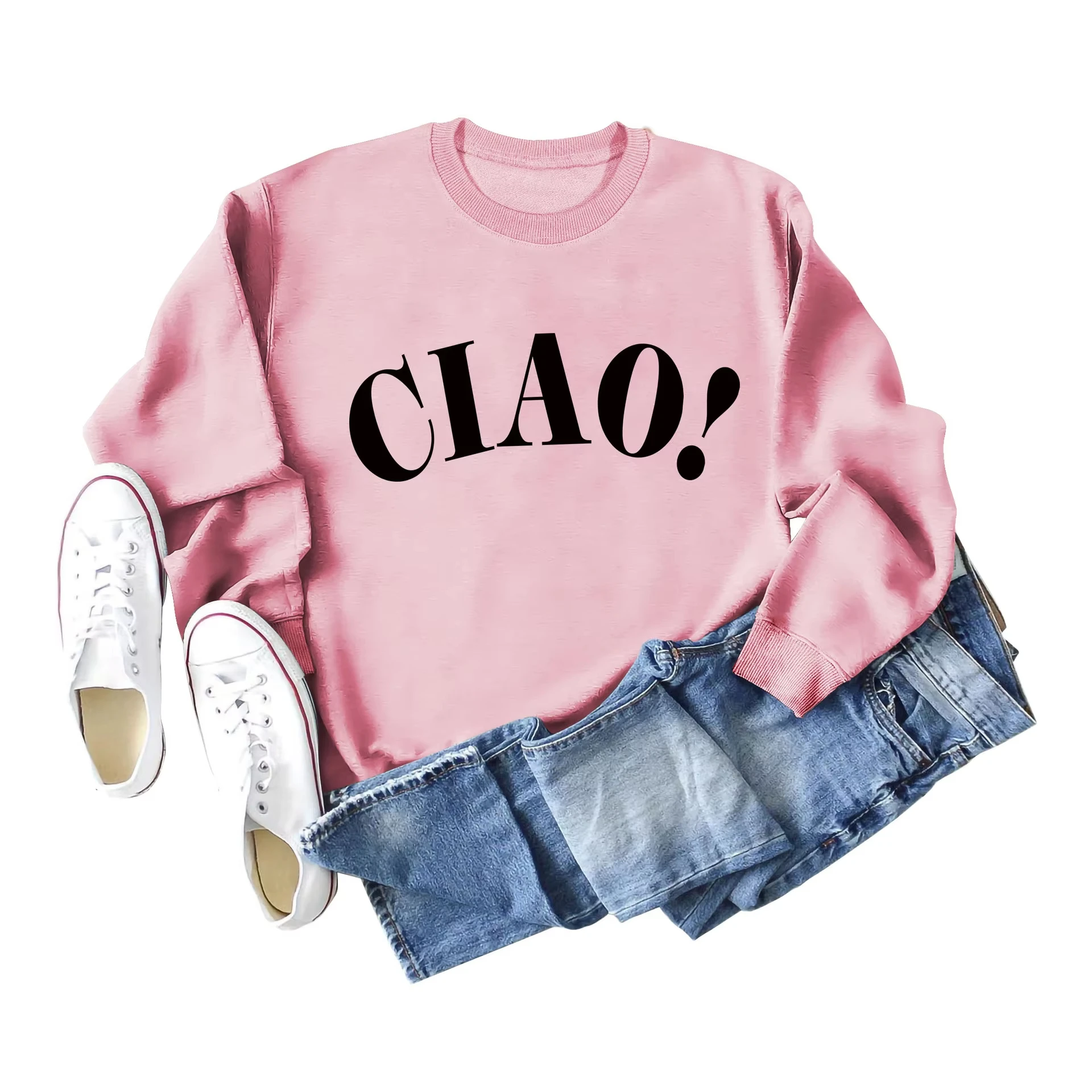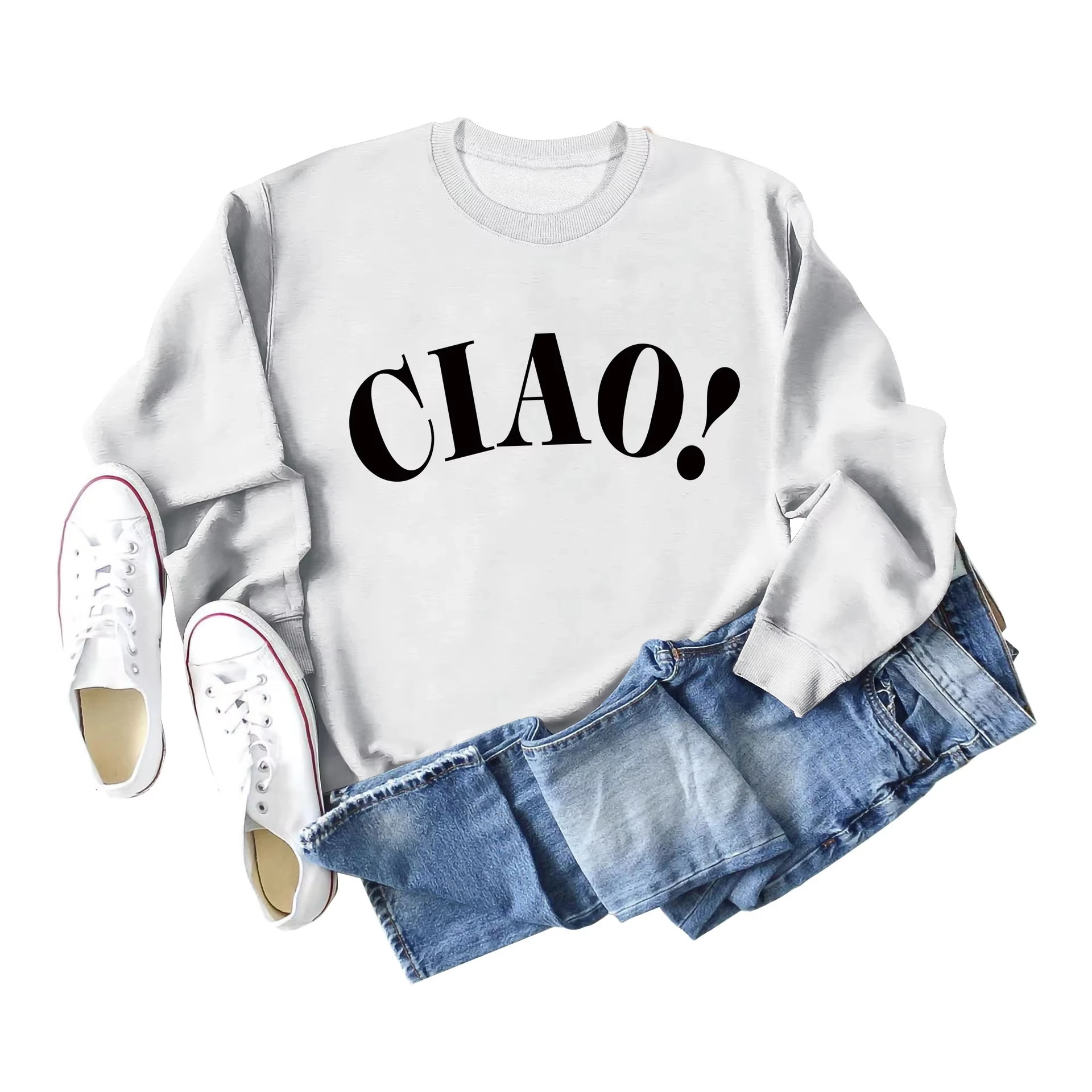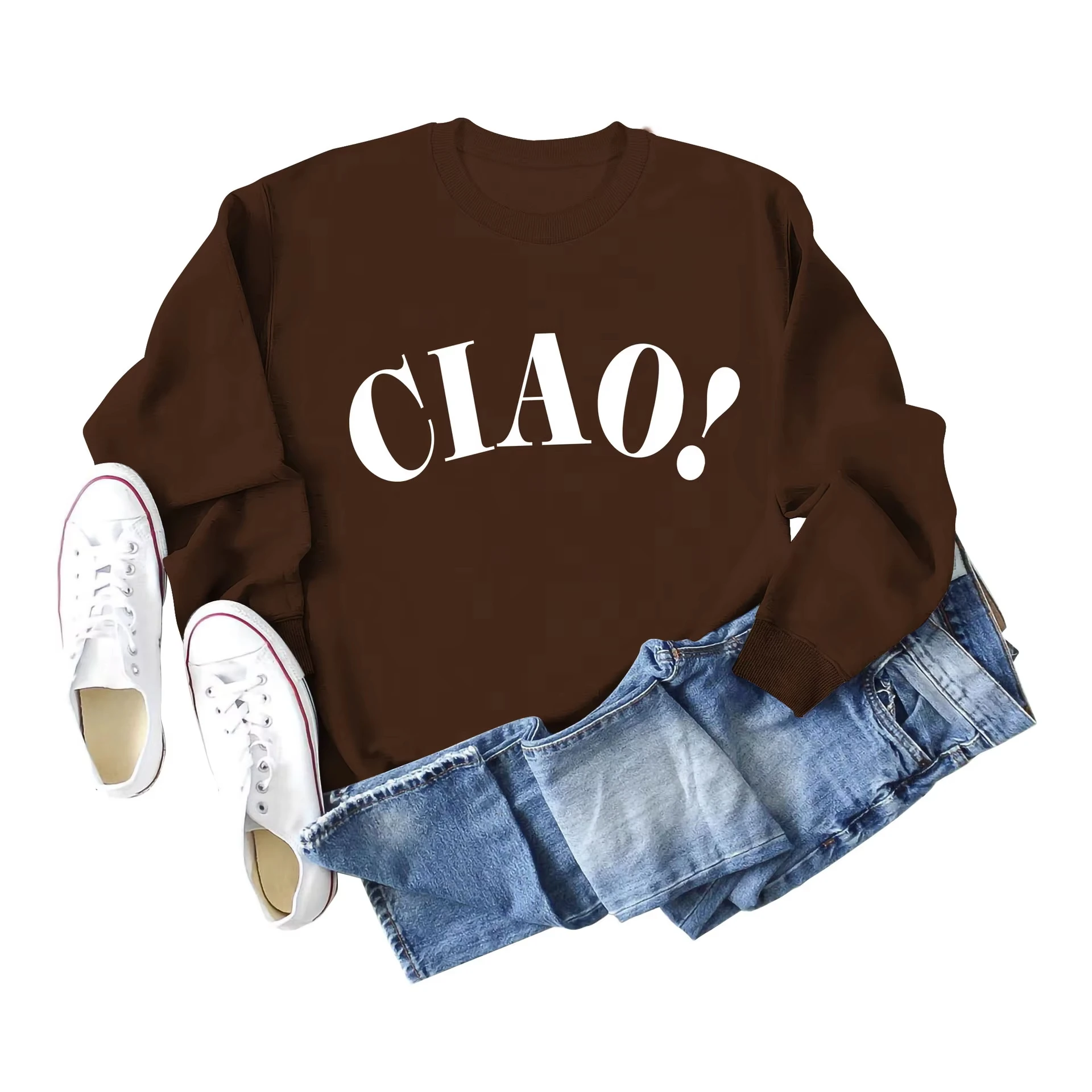New long-sleeved blouse ciao simple letter round neck pullover sweater loose bottoming shirt women