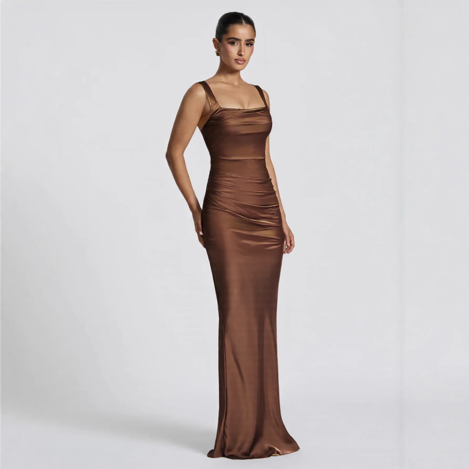 ZYHT 73957 Hot Selling Women Lady Printed Satin Beige Mermaid Fish Tail Floor Length Party Cocktail Evening Dress Gown