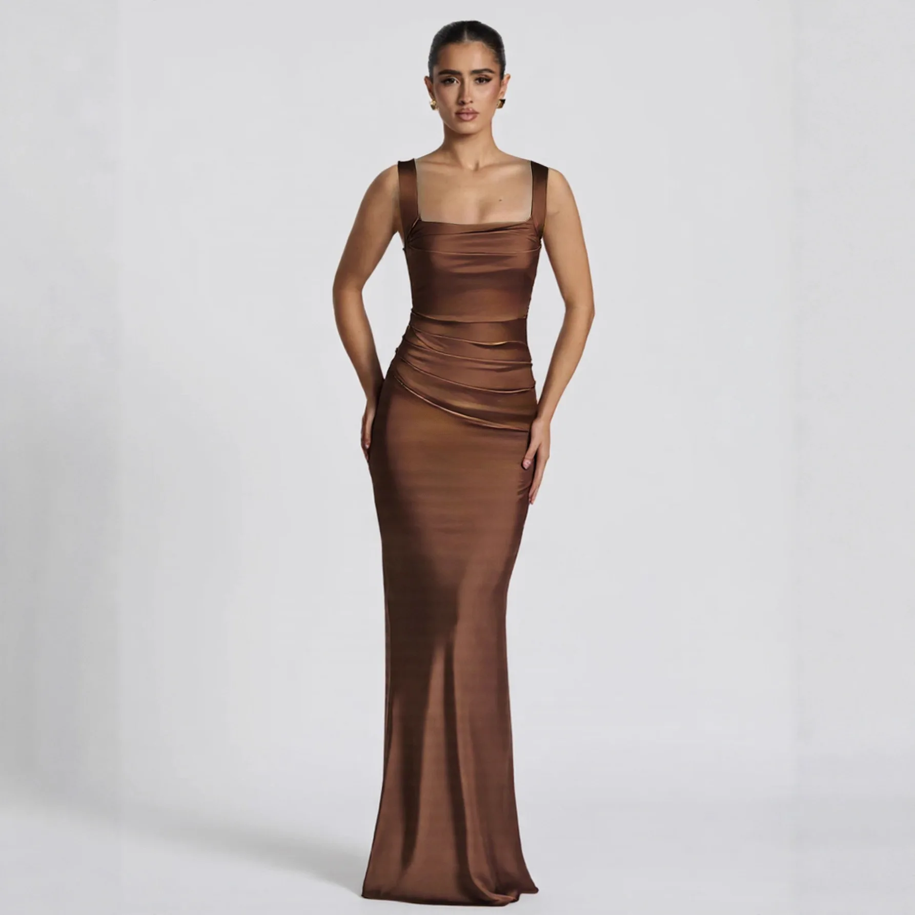 Fashion Sexy Pleated High-end New Slimming Strapless Floor-Length Trumpet Silhouette Cashmere Diamond Elegant