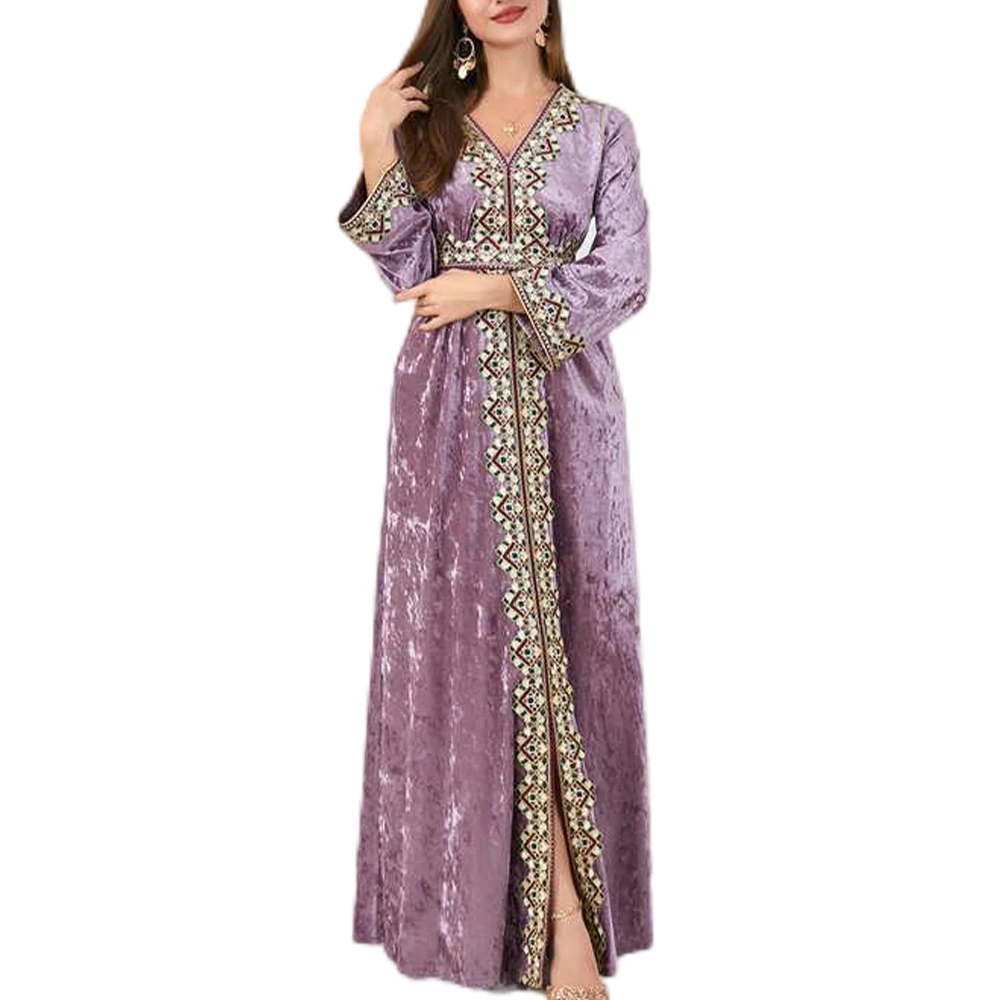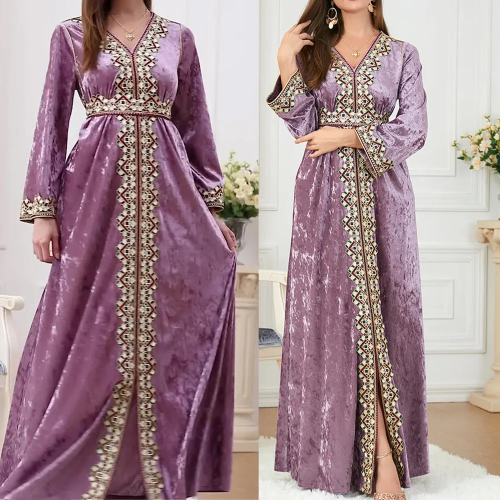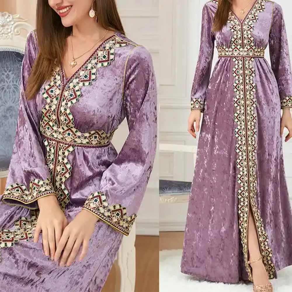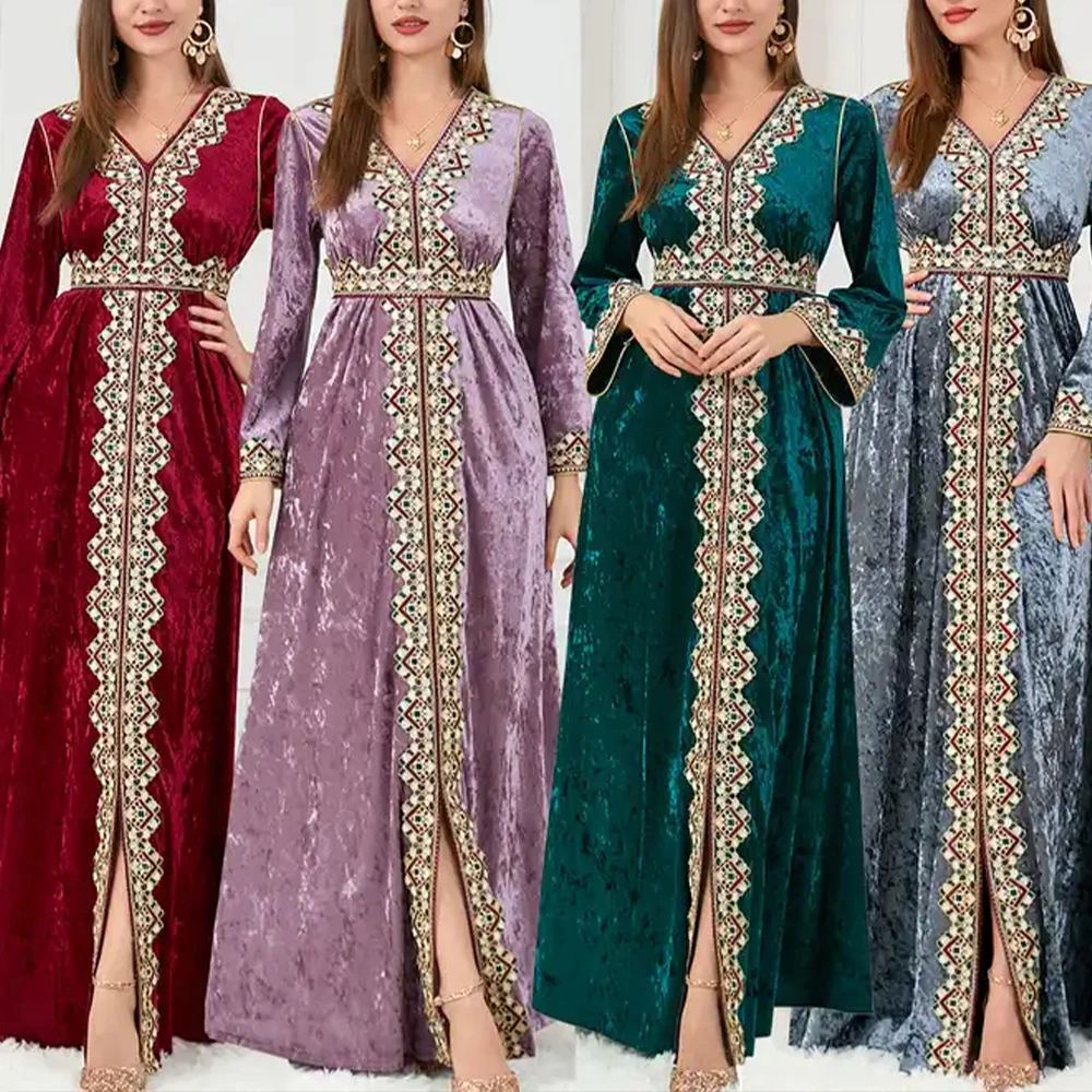 ZYHT 21541 Wholesale Crew Neck High Waist Casual Dresses Elegant Lace Velvet Mermaid Hem Ruched Long Sleeve Dresses for Women