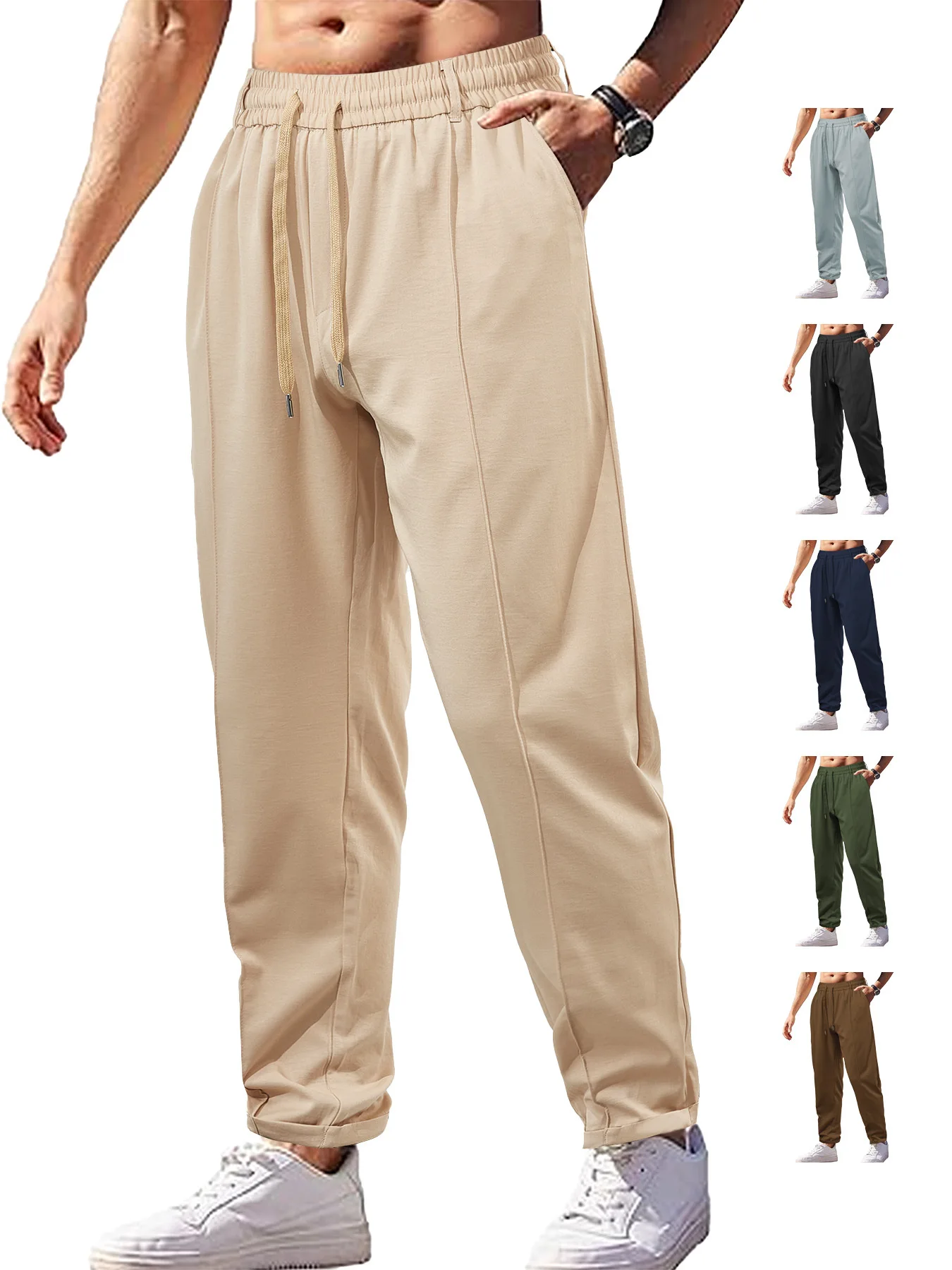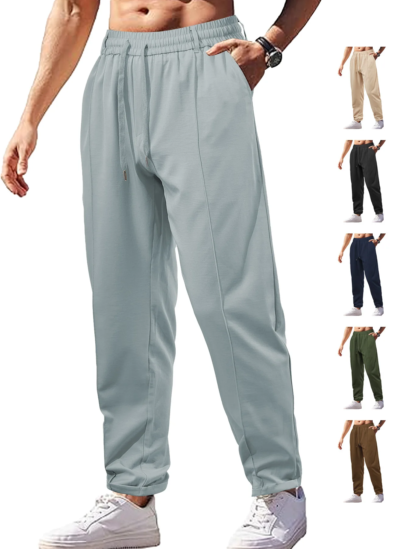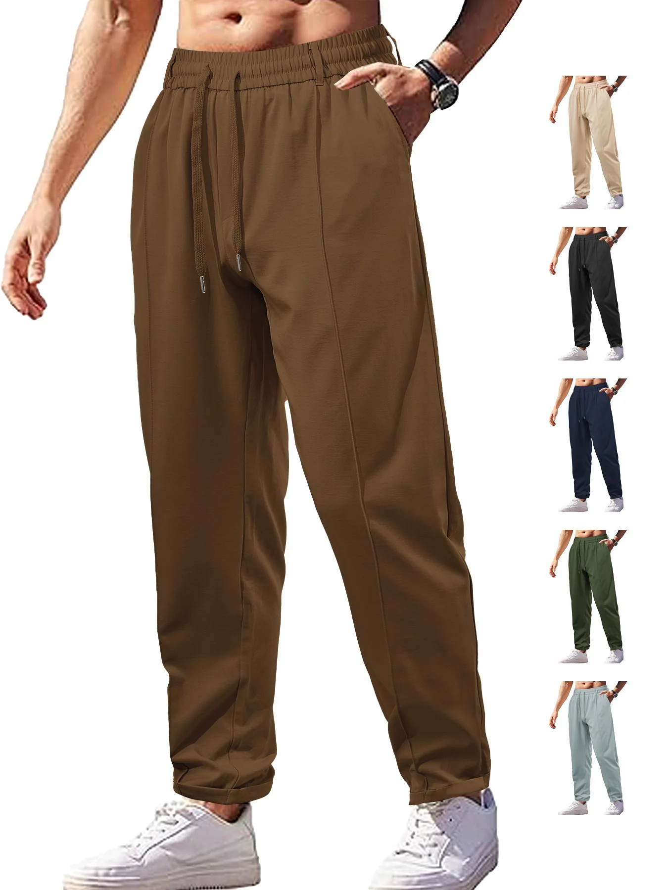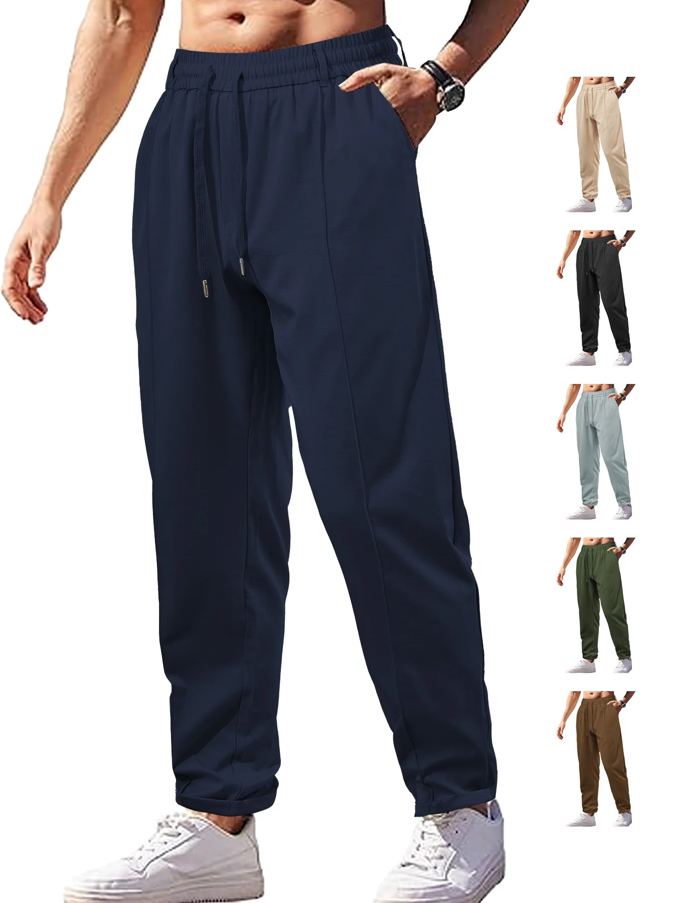 Custom logo Men's Lightweight Running Pants 170g Polyester Twill Woven Trousers Breathable Long Sports Sweatpants