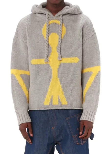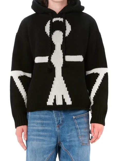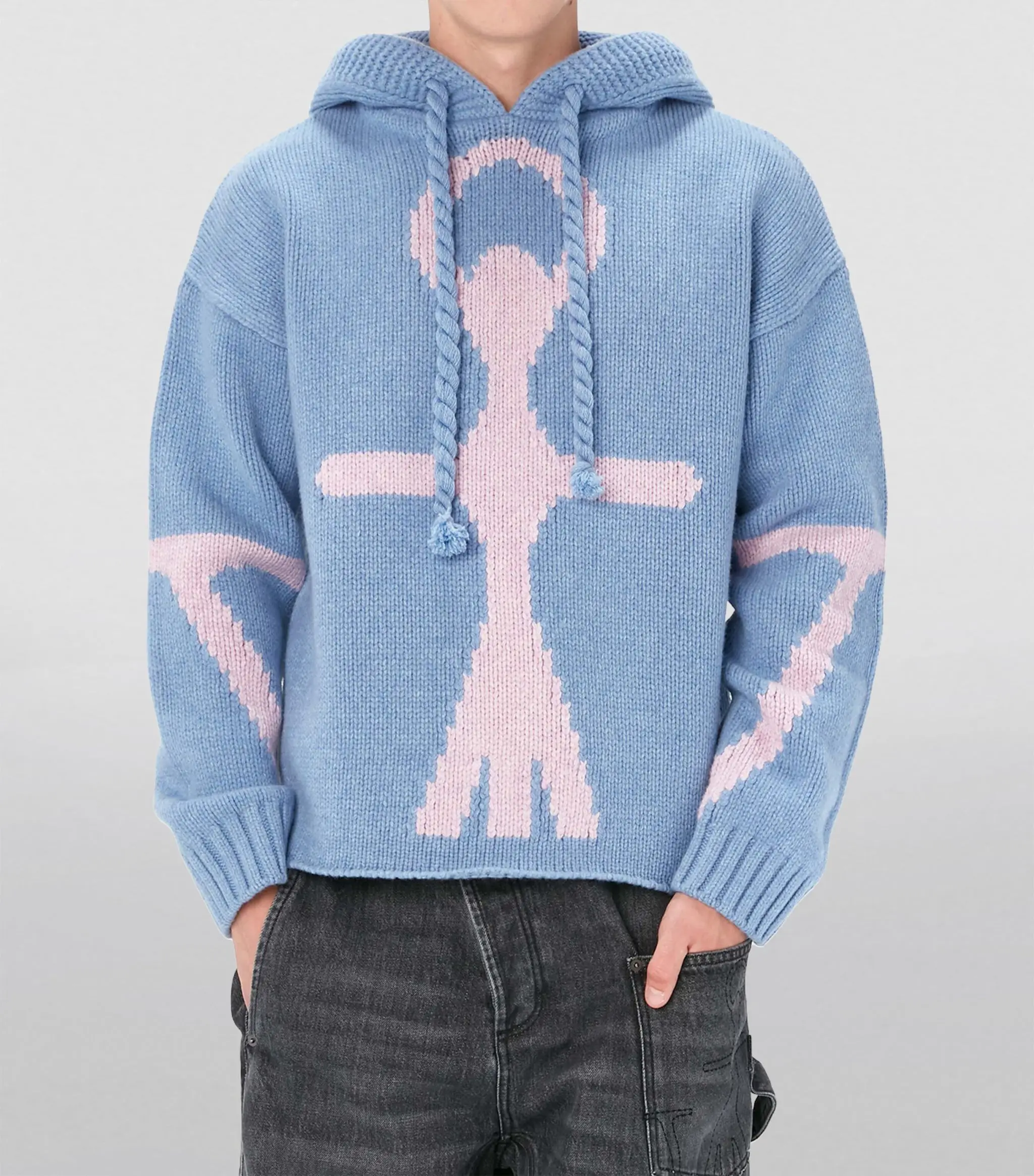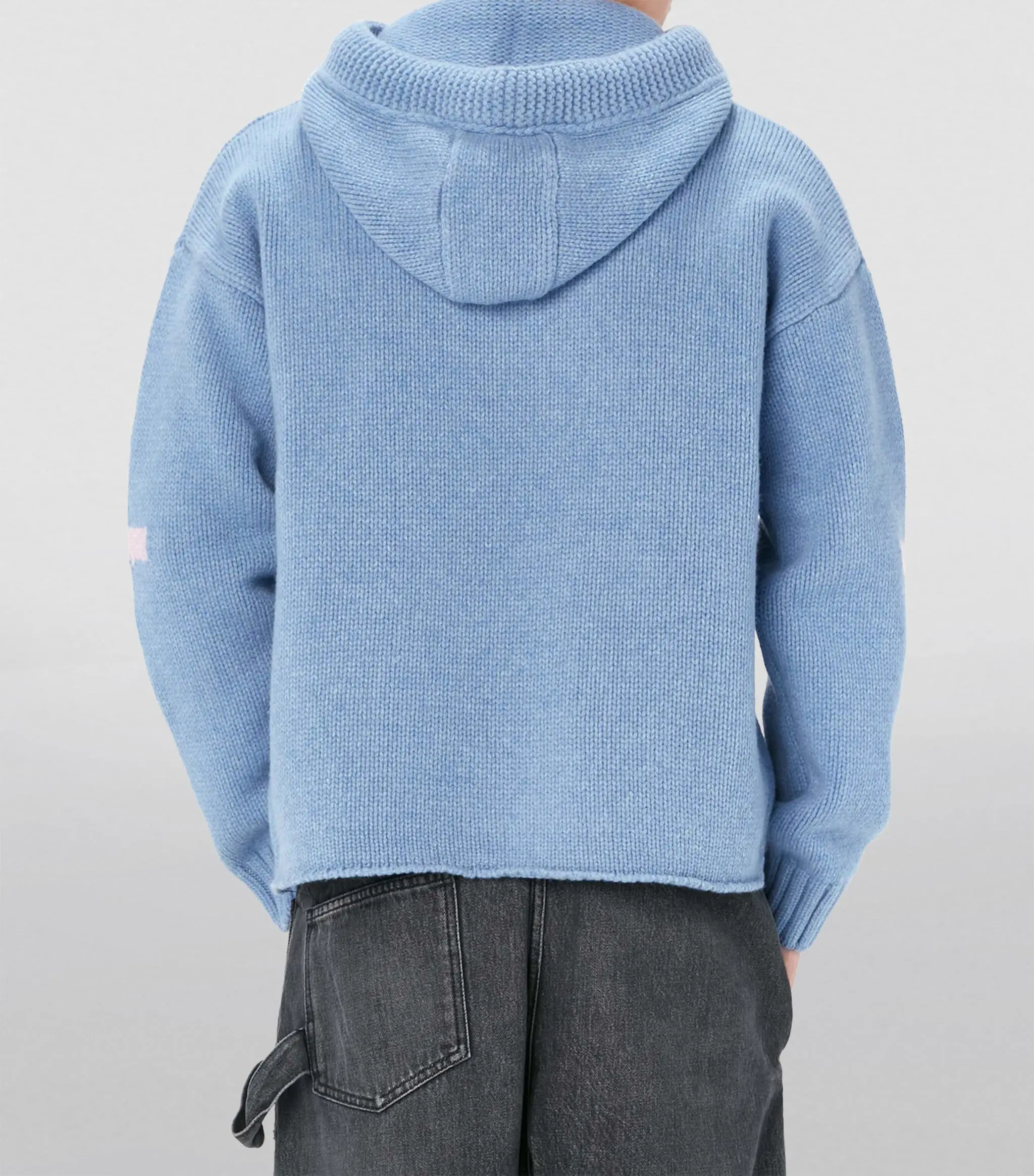 Custom design logo pattern brand name wool blend hoodie knitted sweater long-sleeved embroidered jacquard men's knitted hoodie