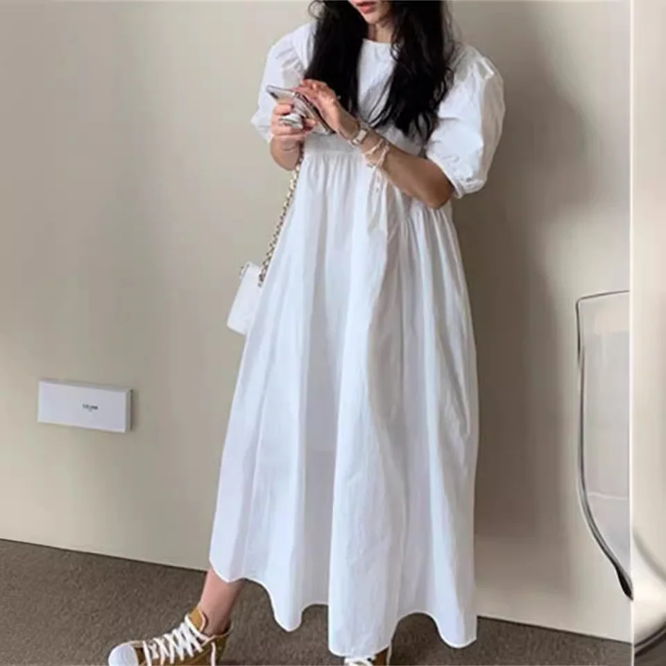 2026 summer Japan and South Korea Lotte new Japanese ins loose and thin round neck short-sleeved dress women's skirt
