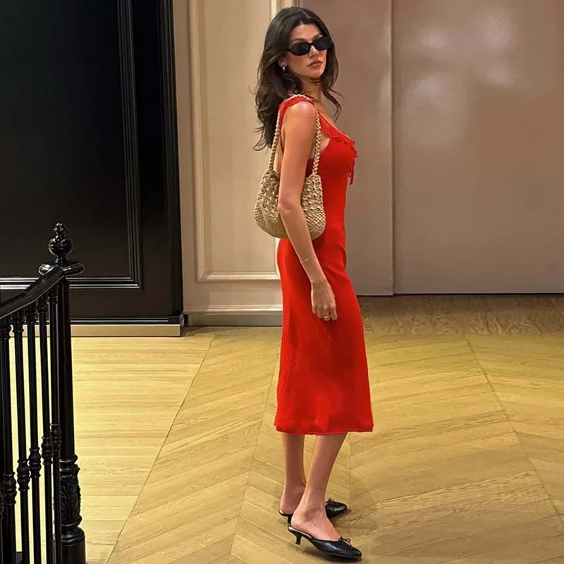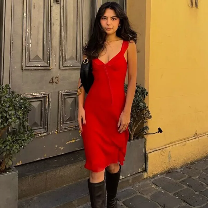 Women 2026 Summer New Chic Fashion Medium and Dress Vintage Sleeveless Female Dresses Robe