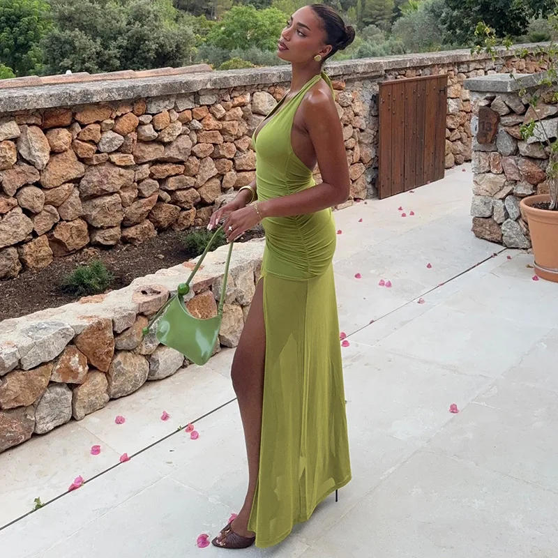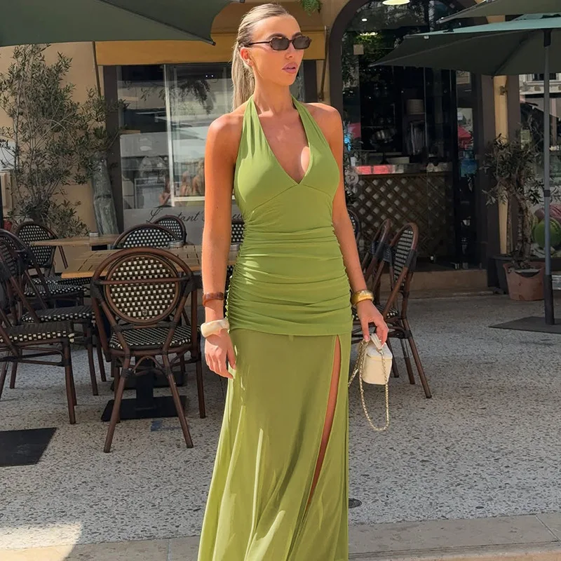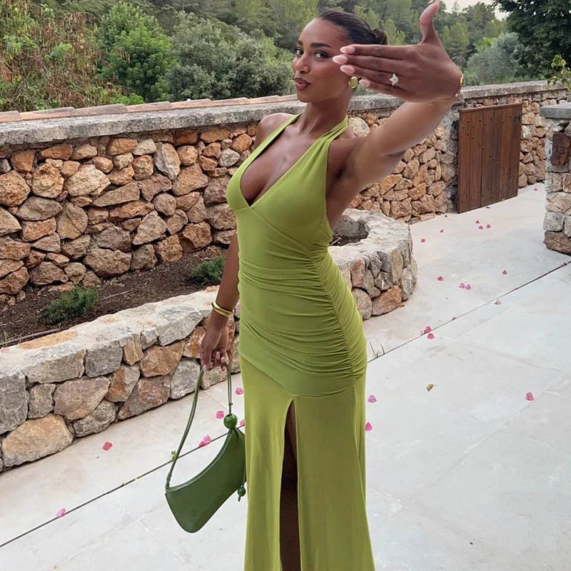 European American Summer Dress Womens Fashion Sexy Backless V-neck Long Split Leg for Casual Wear