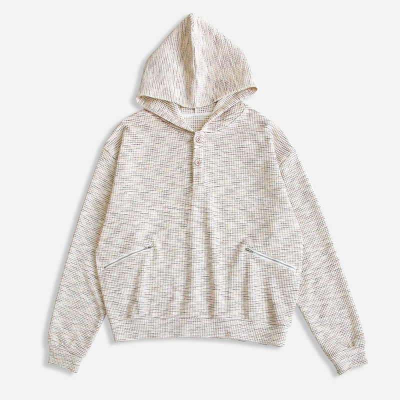 Women's Casual Hooded Pullover Hoodie Zippered Pocket Button Closure Knitted Waffle Fabric Polyester/Cotton Blend Full Sleeves