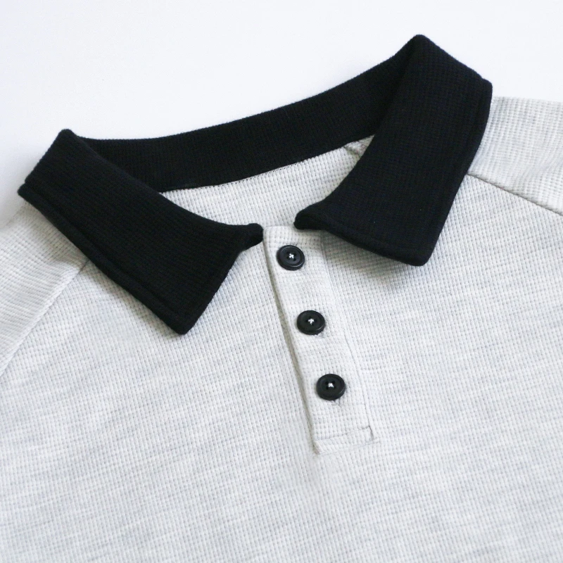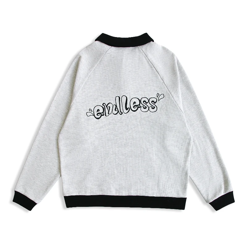 Ladies' Waffle Fabric Polo Neck 100% Cotton Casual Buttoned Open Embroidered Letter Print with Pockets for Autumn/Winter/Spring