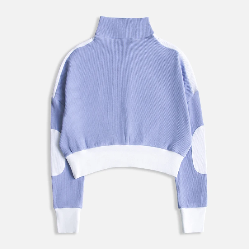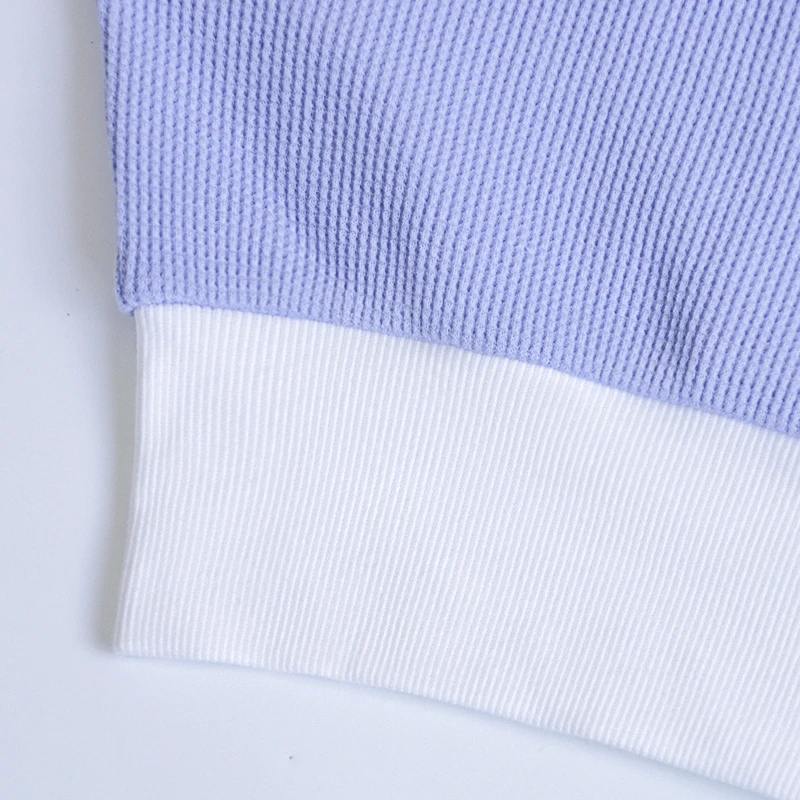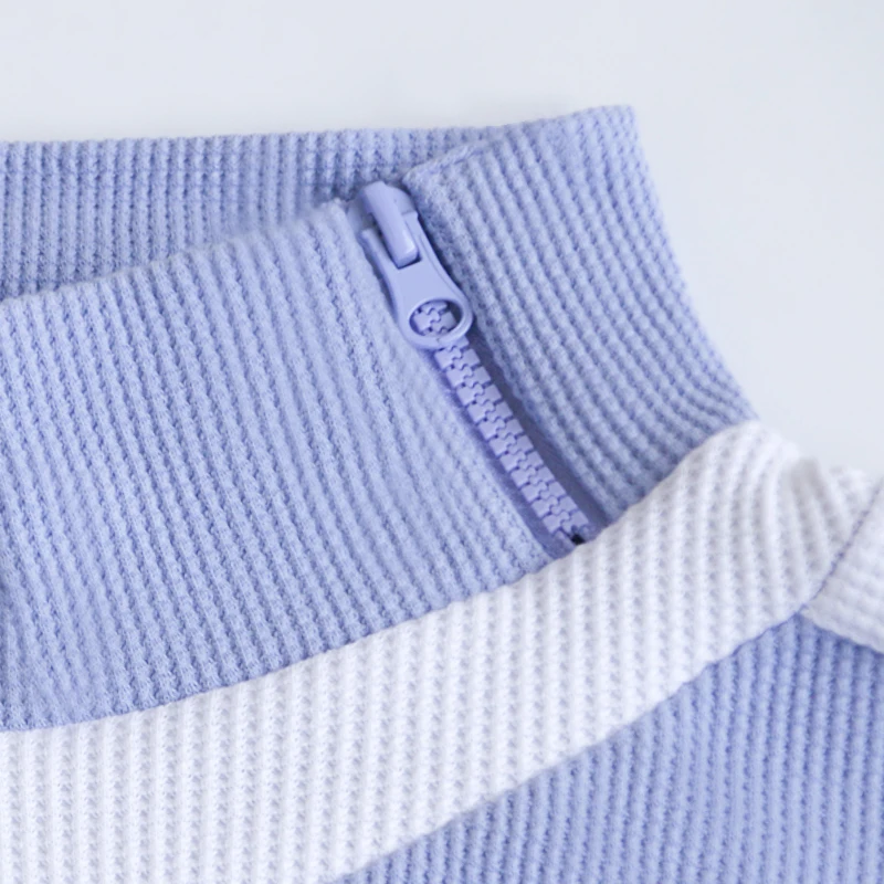 Women's Waffle Fabric Short Zipper Lapel Sweatshirt High Street Style Color Blocking Design Winter/Autumn/Spring Seasons