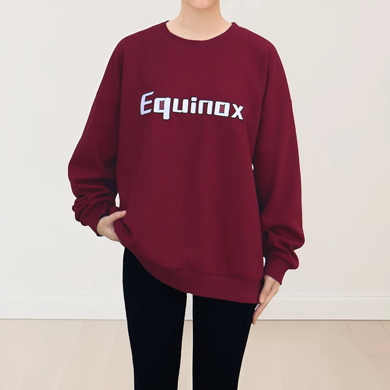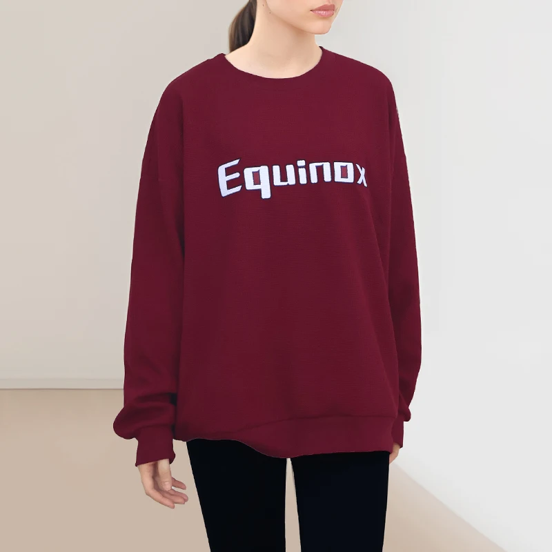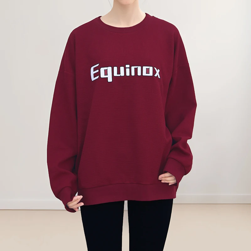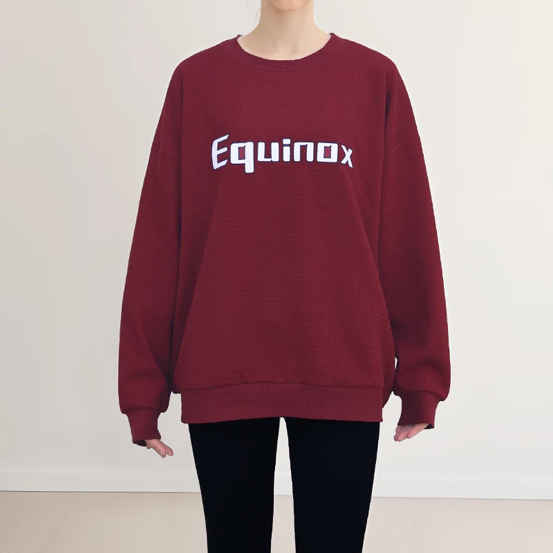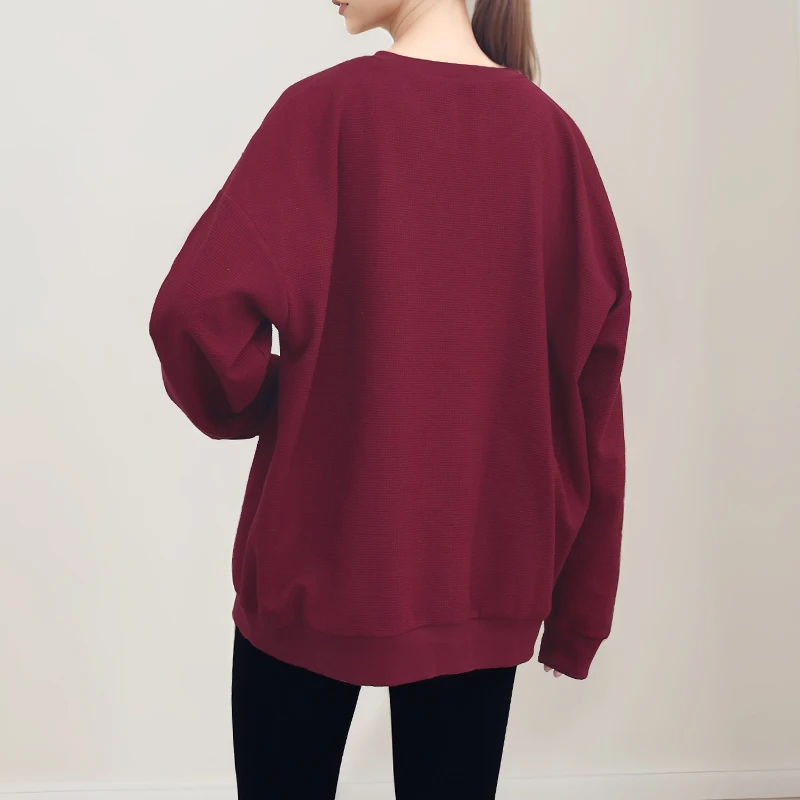 Women's 320g Waffle Fabric Casual Pullover Custom Embroidered Round Neck Sportswear in Solid Colors for Autumn and Winter