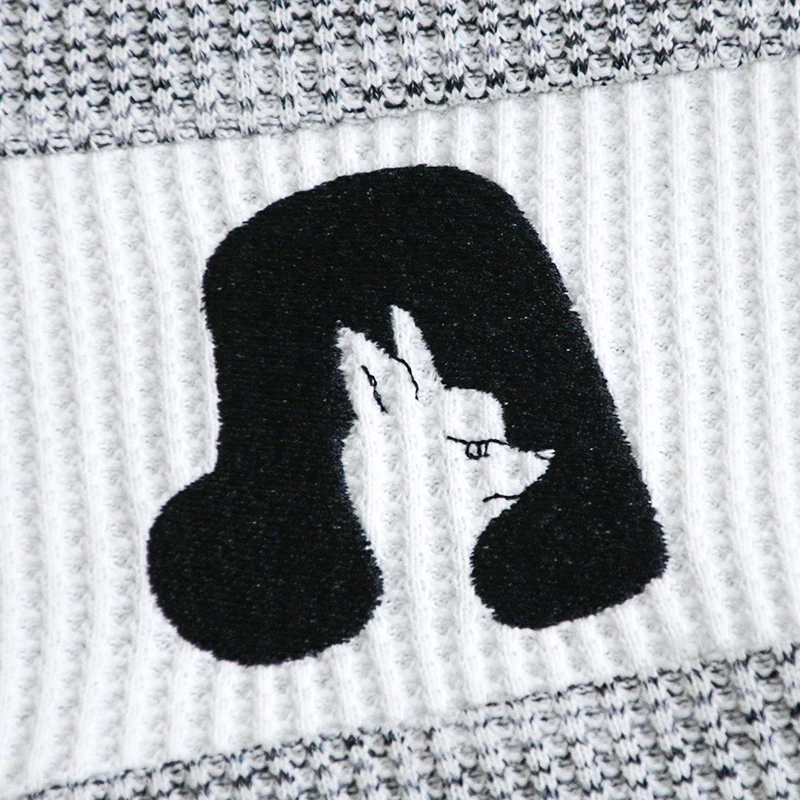 Ladies' Casual Neck Embroidered Hoodie Front Logo Waffle Fabric Animal Pattern Irregular Patchwork for Spring Summer Winter