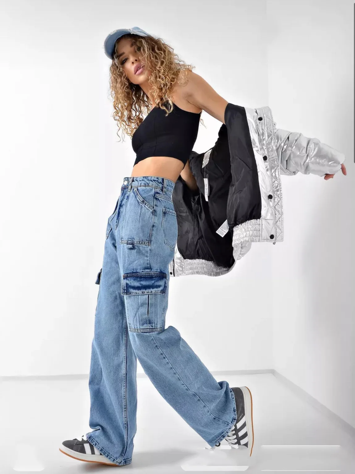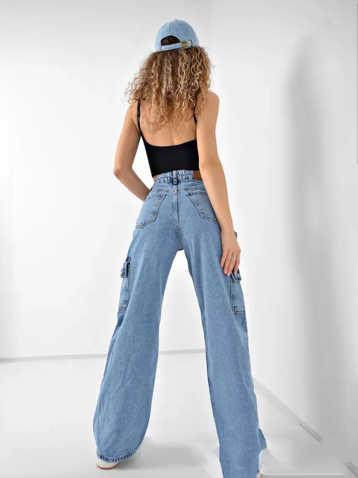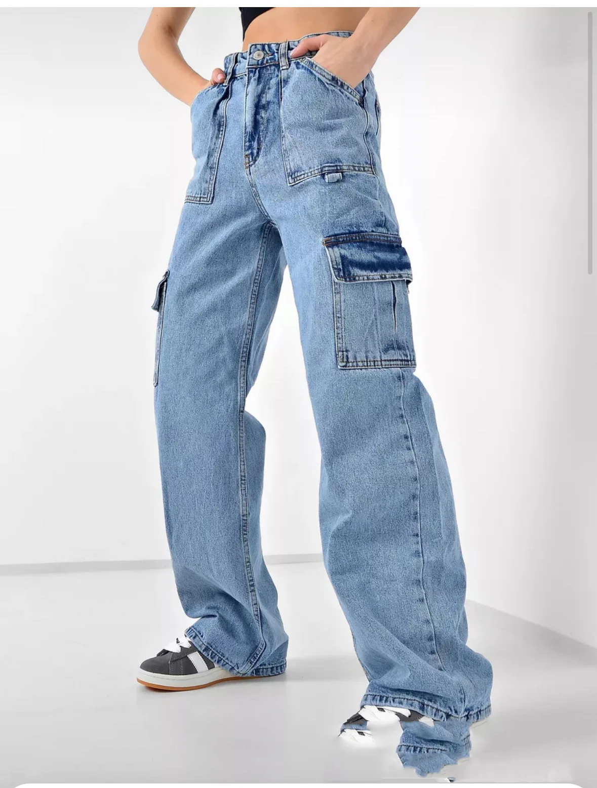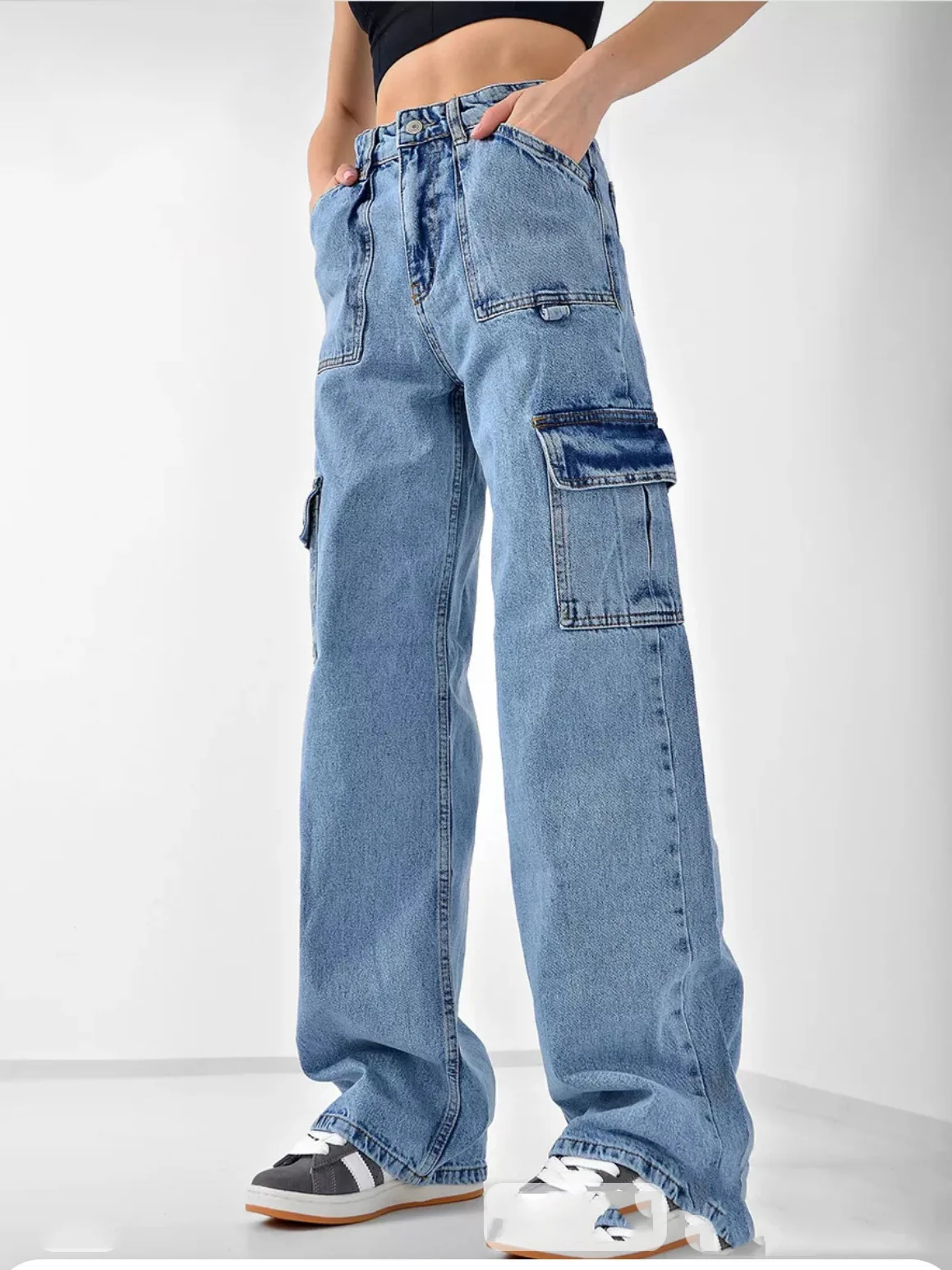 2026 New Y2K High Waist Street Pants Loose Wide Leg Floor-Mopping Workwear Multi-Pocket Jeans