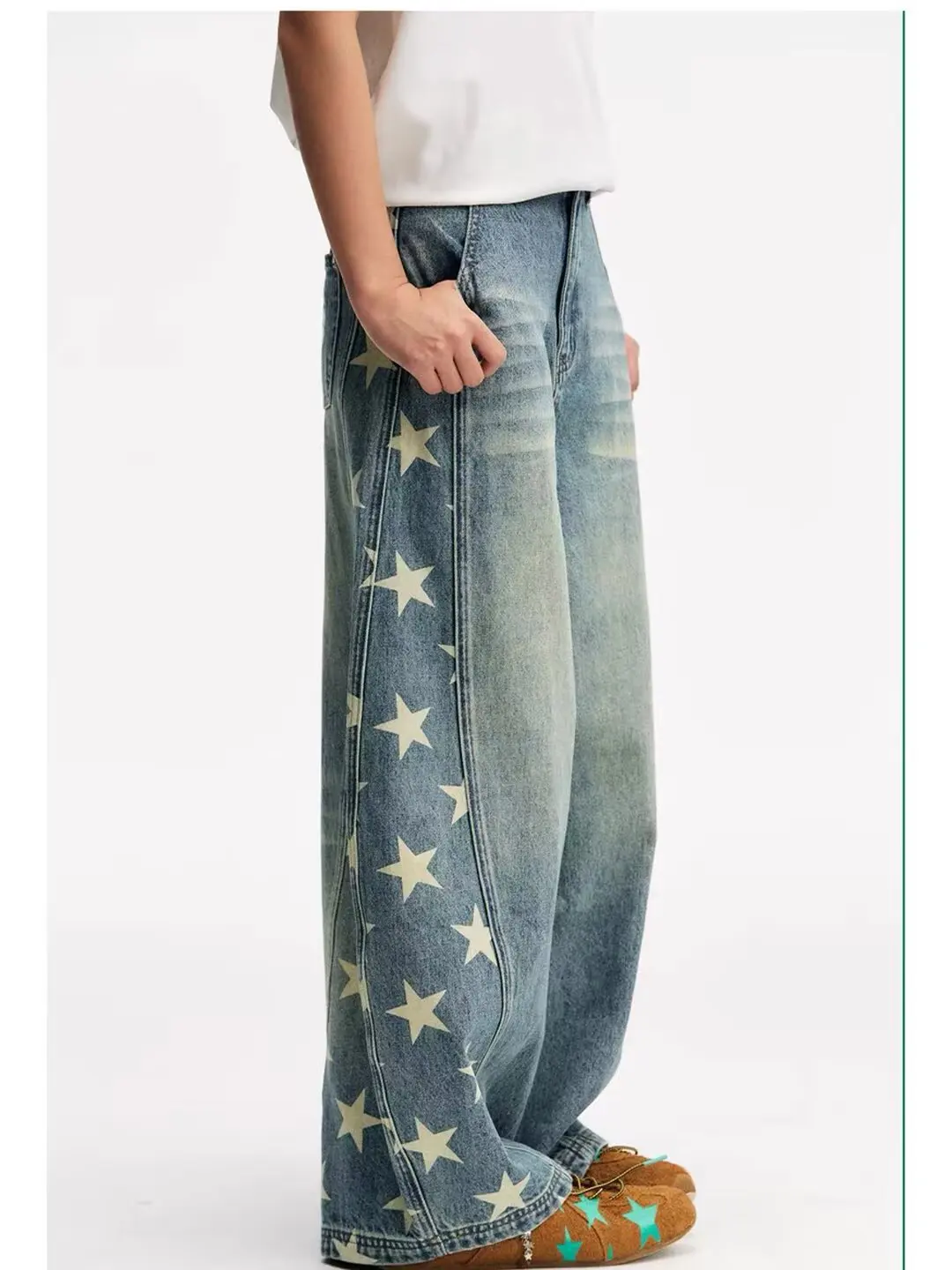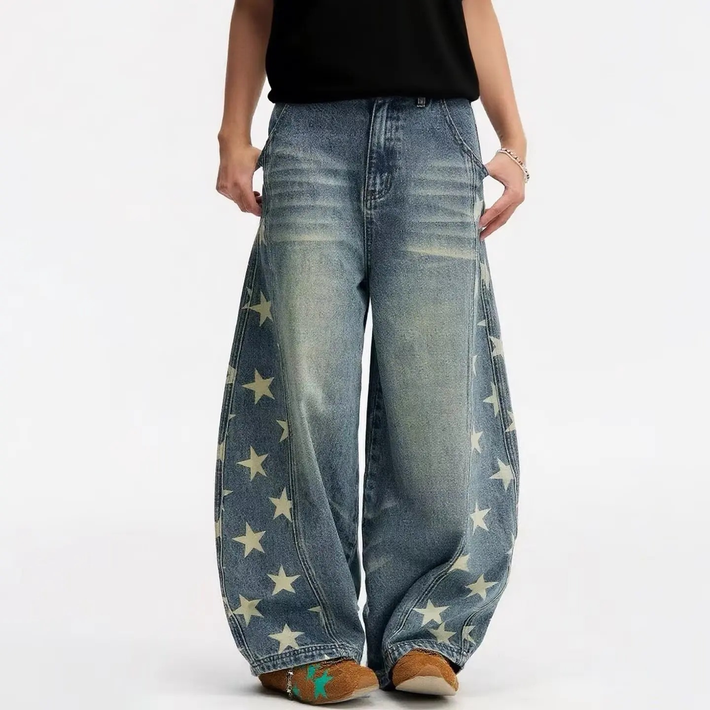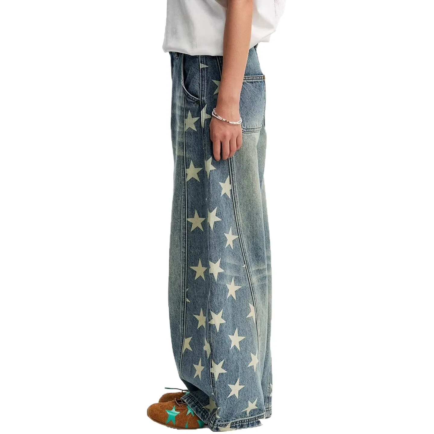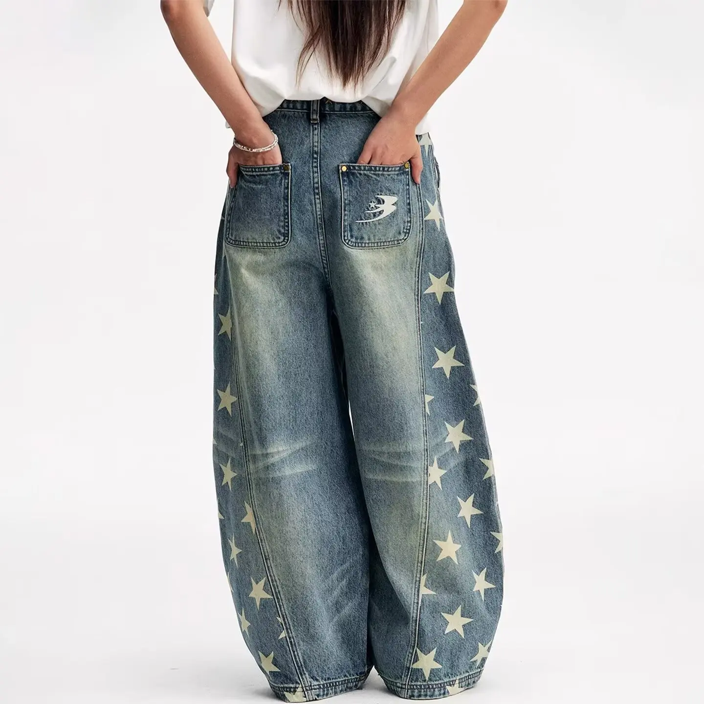 Women's High Waist Loose Wide Leg Jeans Ring Dry Breathable Washable Star Pattern Fade Resistant Wholesale