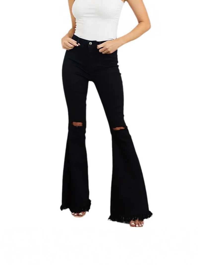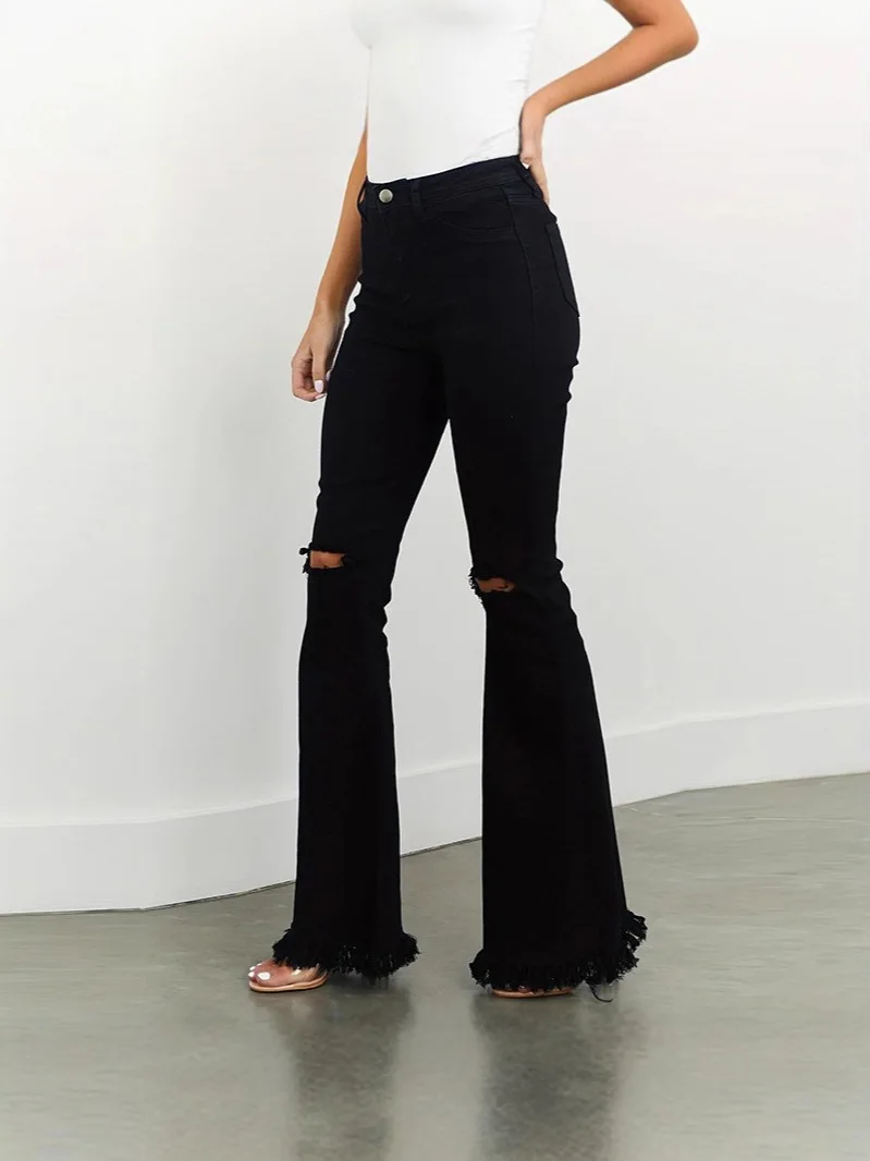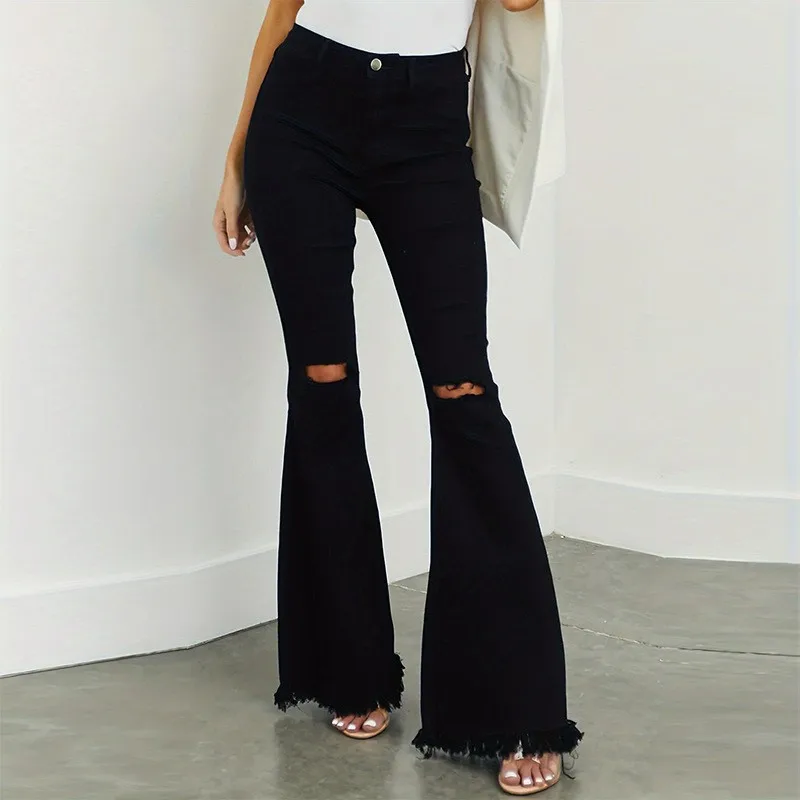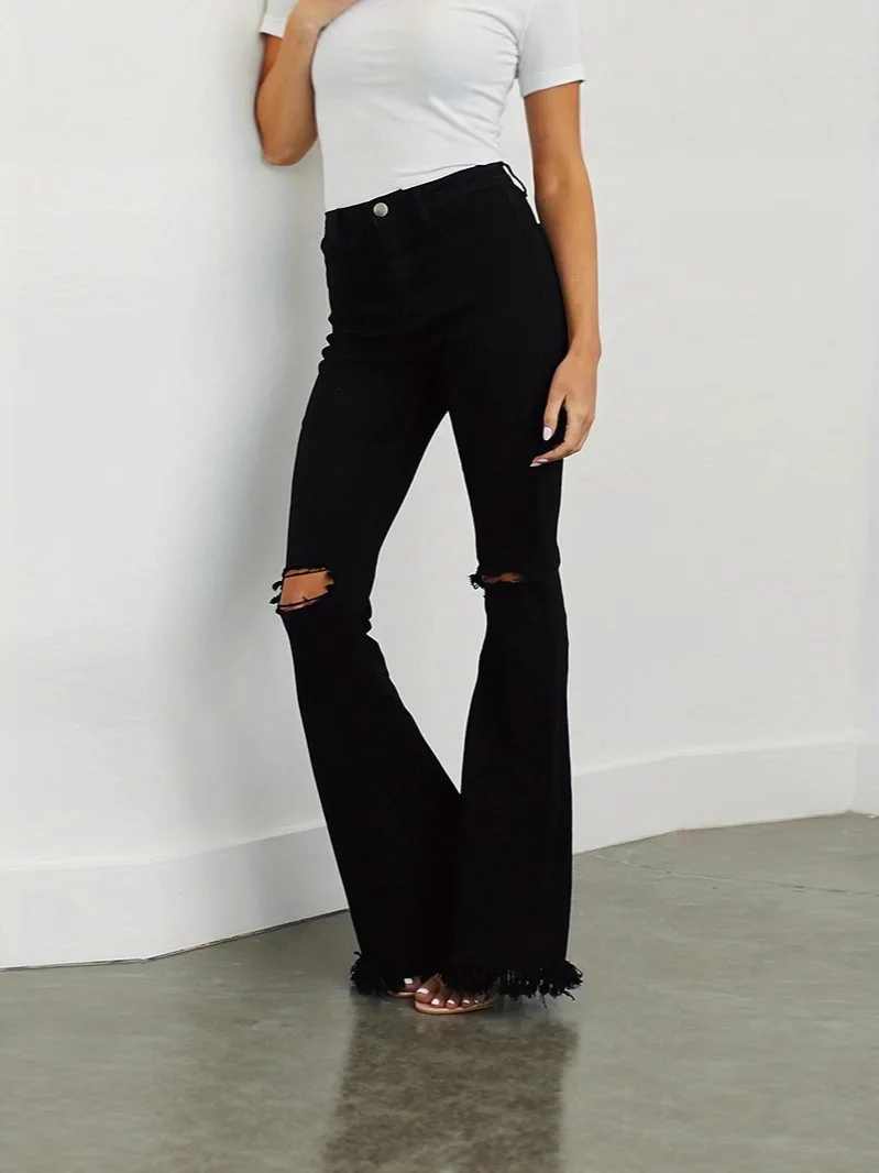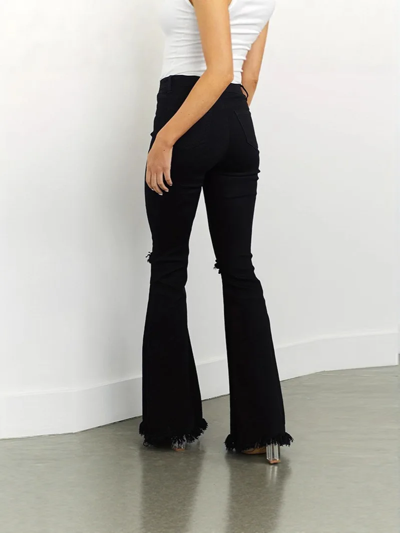 Black Mid-waist Jeans for Women 2026 New Trendy Hot Girl Stretch Ripped Slim Flared Trousers