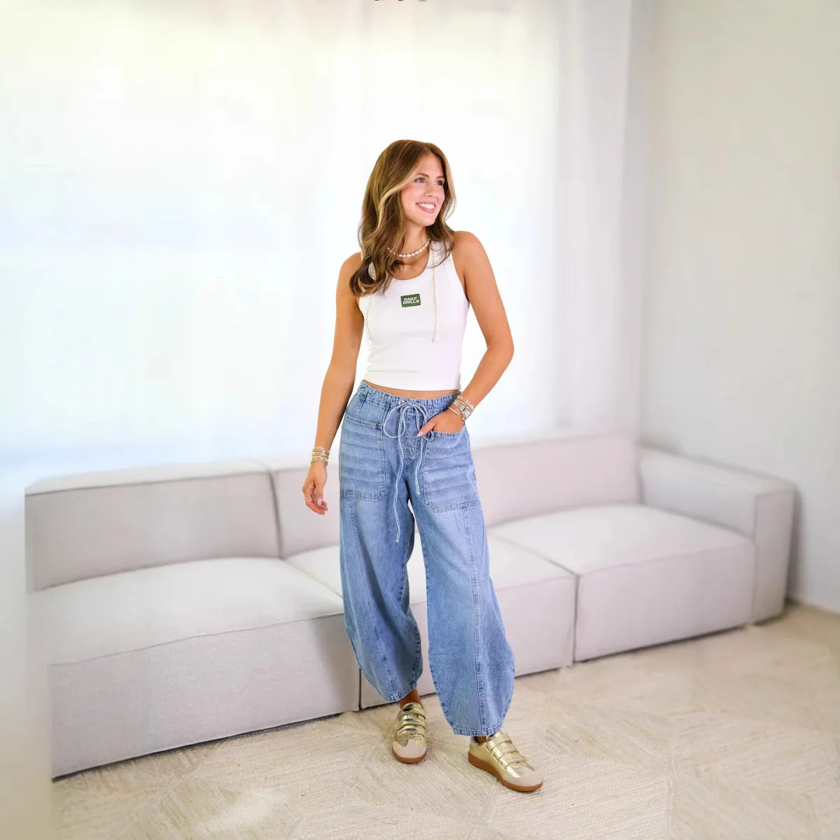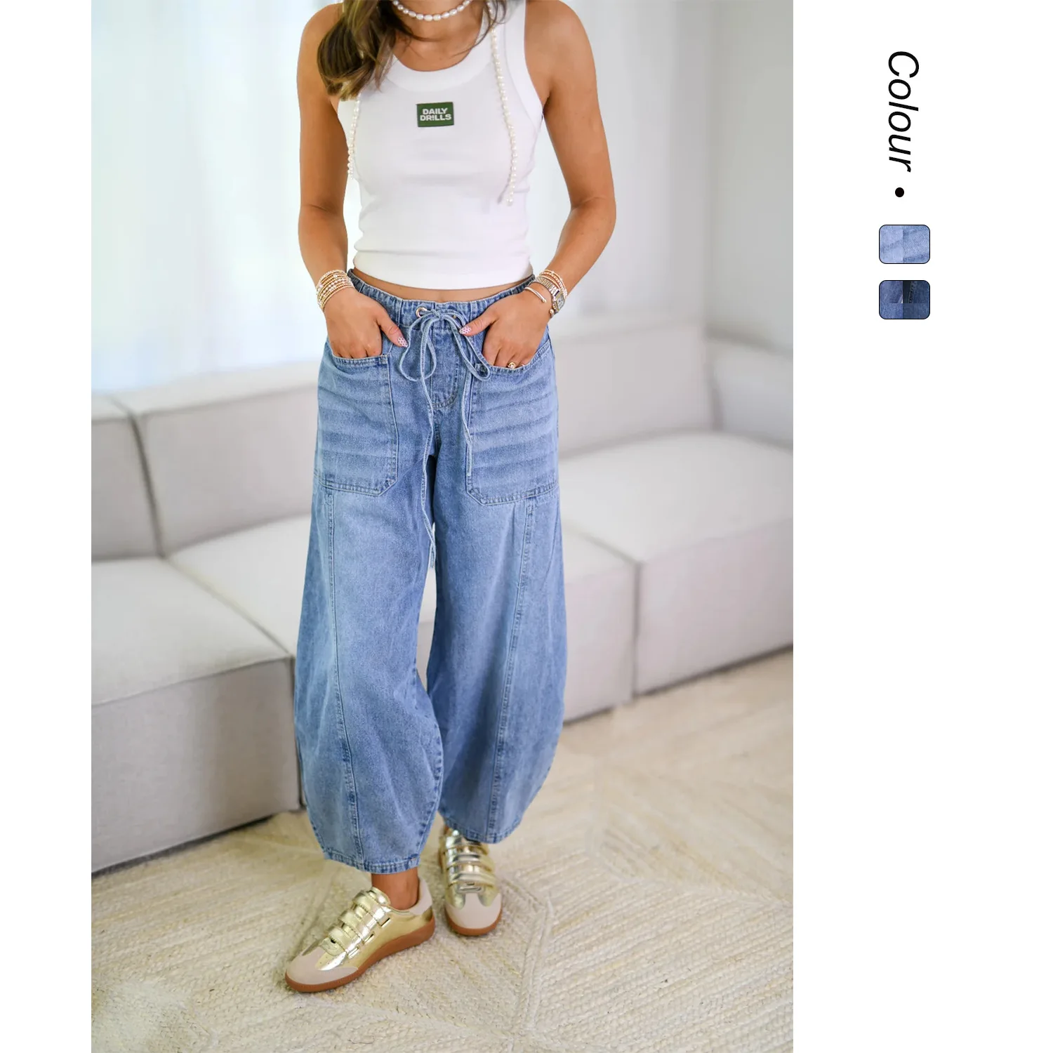 Women's Mid-waist Jeans 2026 Cross-border Foreign Trade European and American Spring Street Trendy Casual Lace-up Jeans