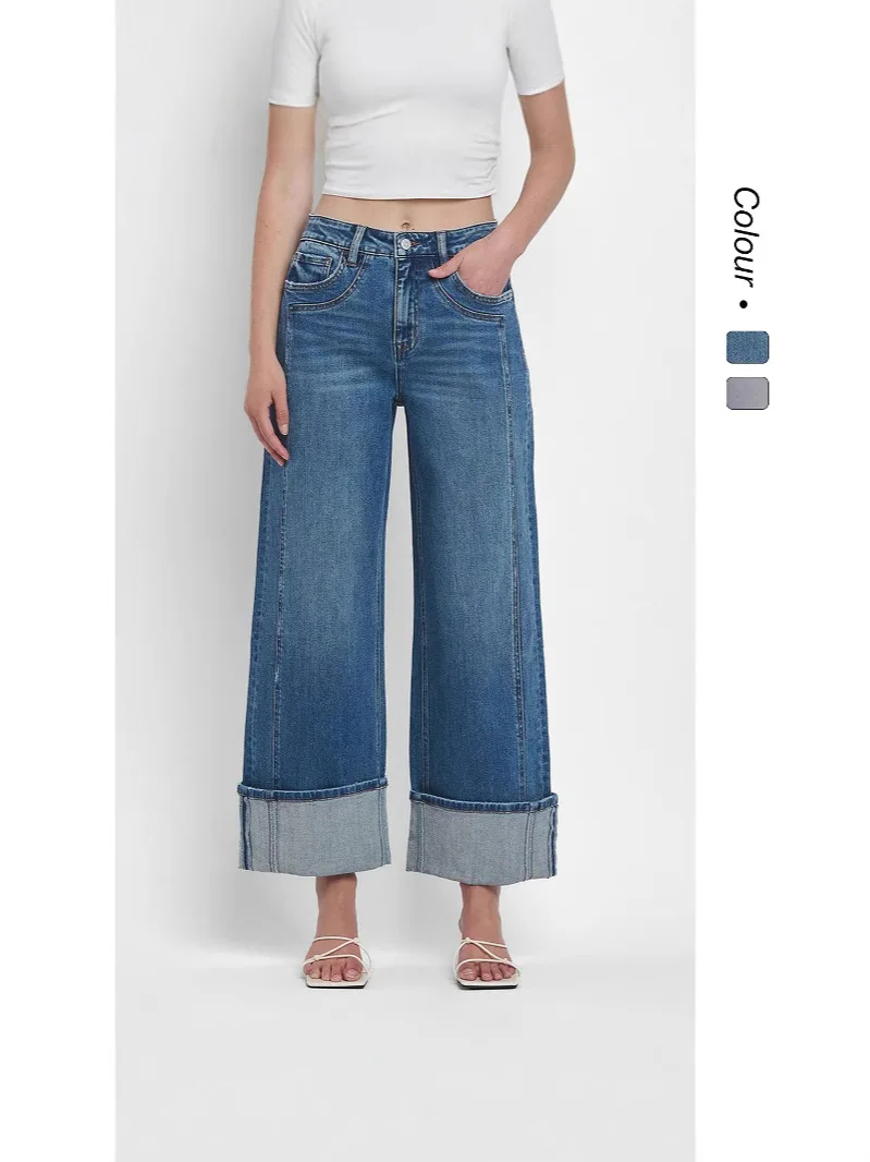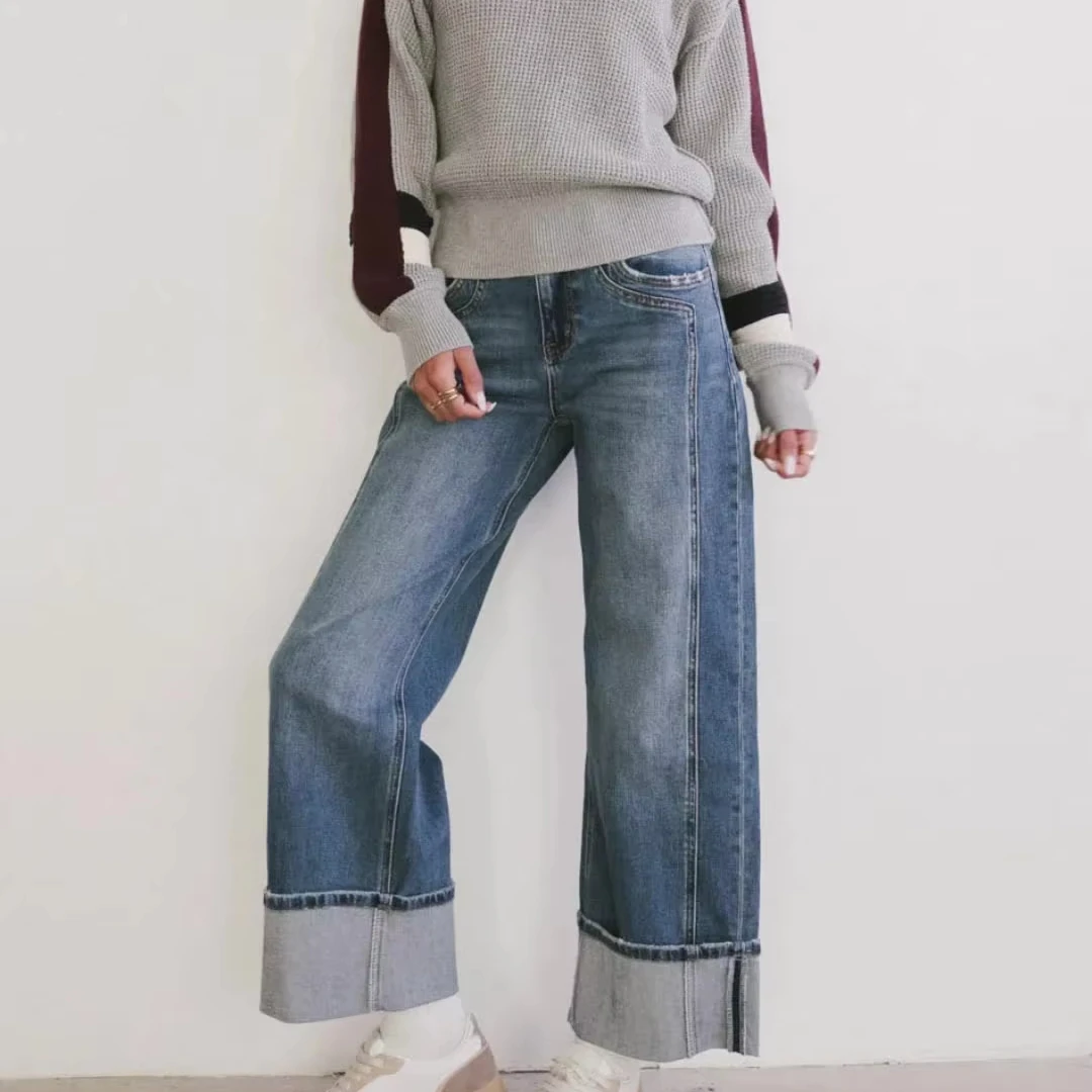 Women's Mid-waist Straight Leg Pants 2026 Cross-border European and American Casual Loose Fashionable Jeans