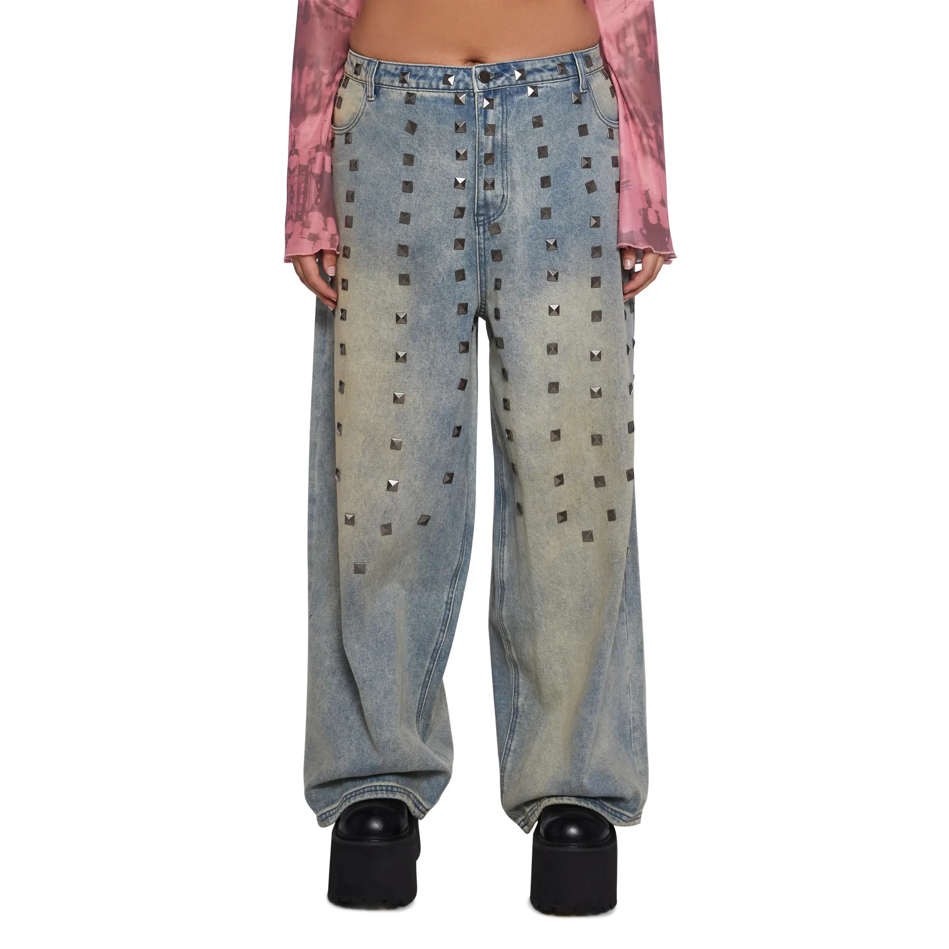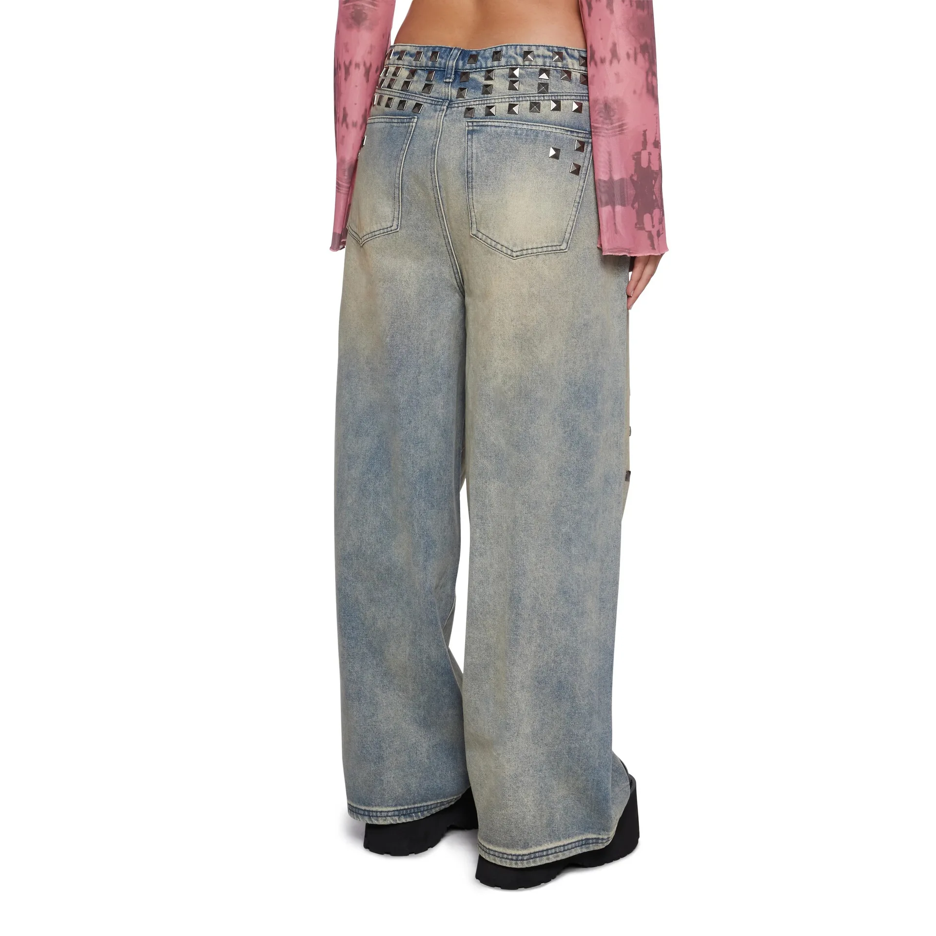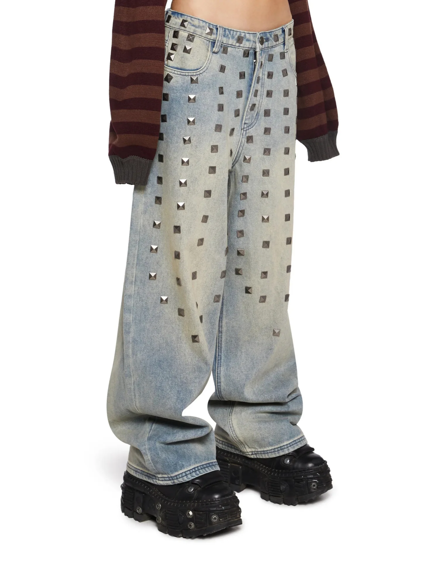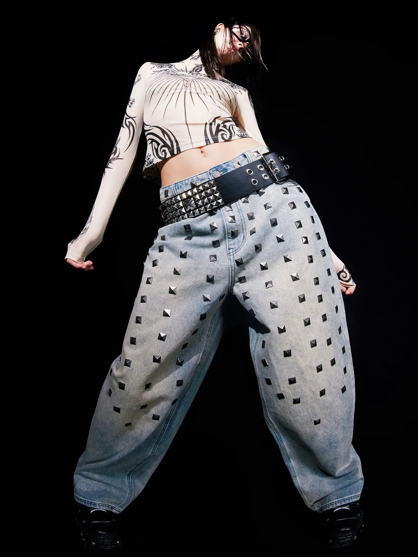 Hot-selling Retro Style Low-waisted Old Rivet Decorative Jeans 2026 Spring and Summer New Street Loose Straight Jeans