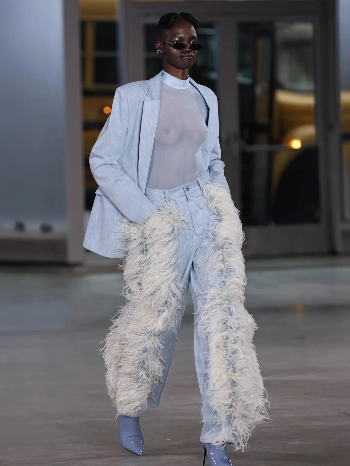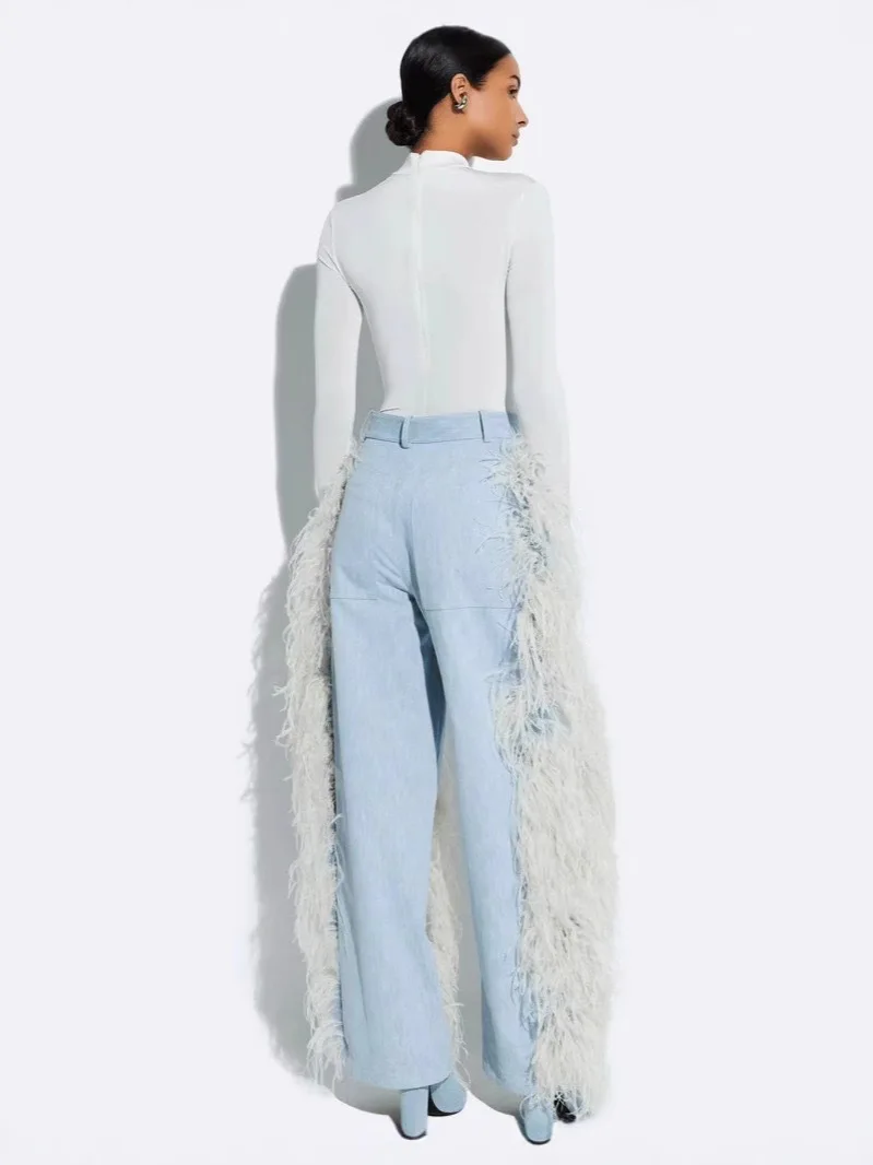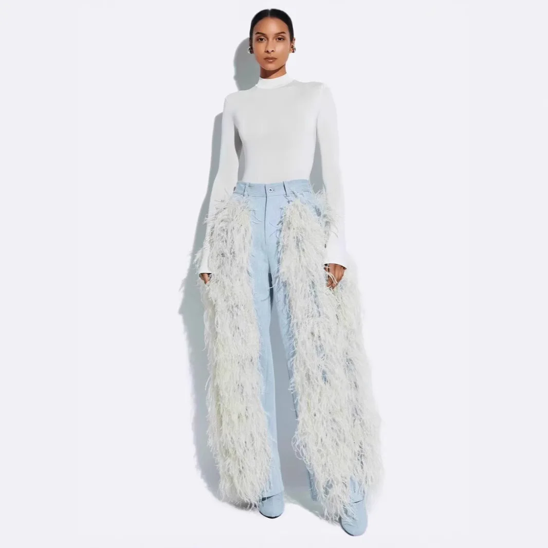 2026 Spring and Summer New Stretch Straight Jeans Fashionable and Personalized Artificial Fur Splicing Design Jeans