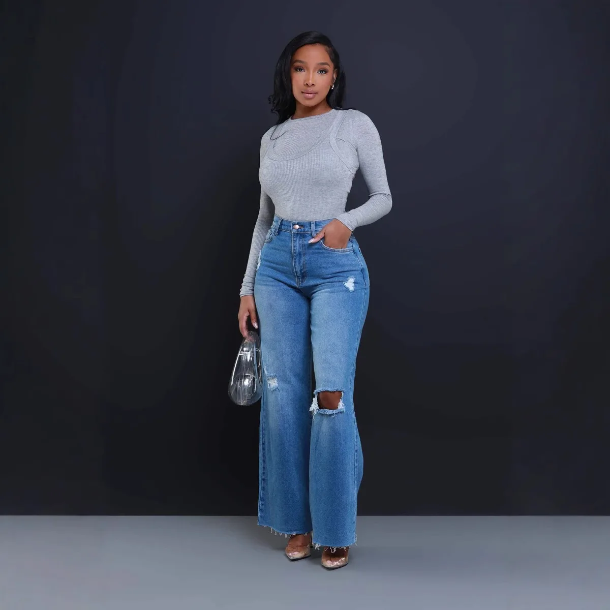 New Street Ripped Jeans Women's Clothing 2026 European and American High Waist Loose Straight Wide-leg Trousers