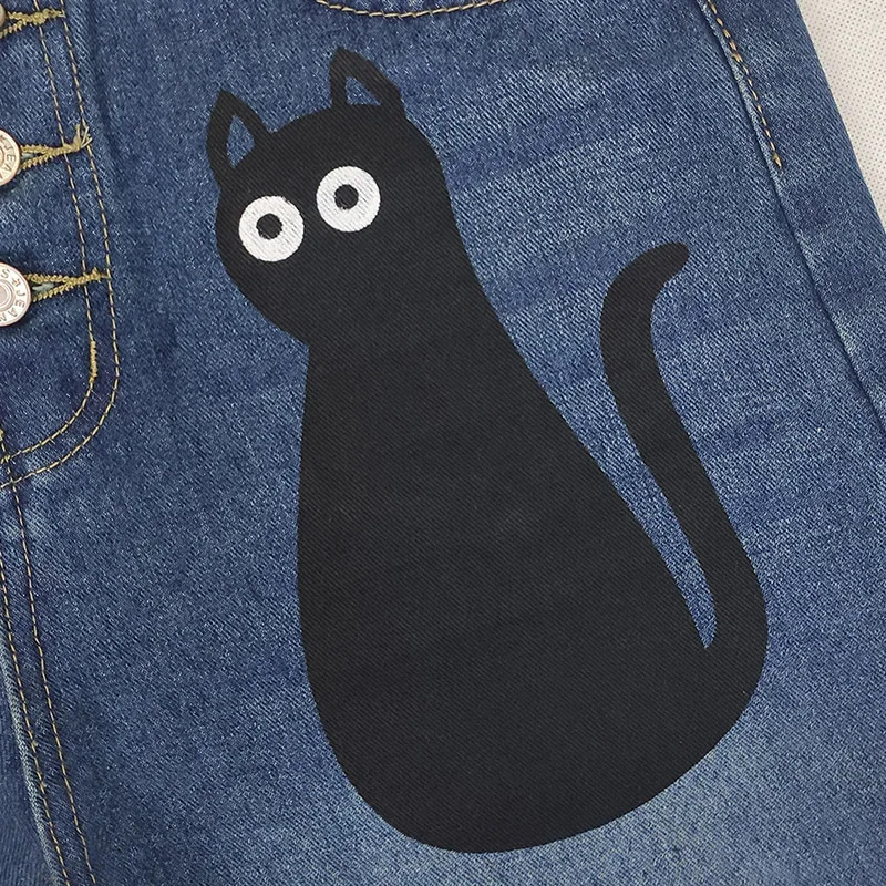 American Retro Printed cat Straight-leg Pants for Women with High Waist Comfortable and Casual Slim Jeans