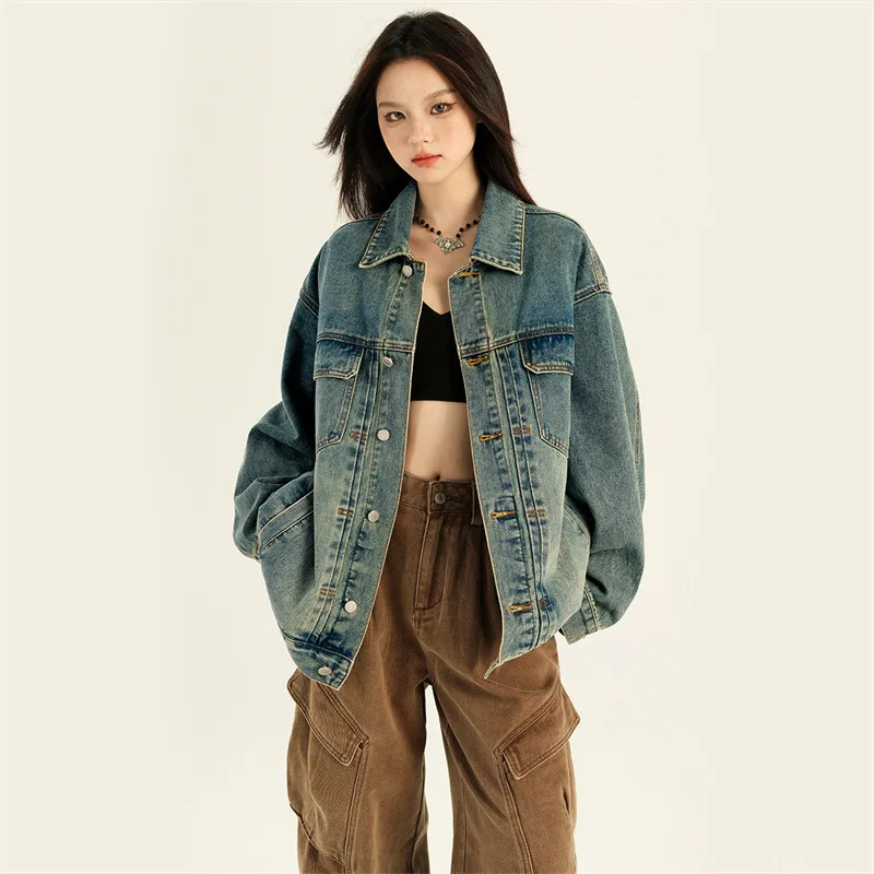 Casual Jacket American Denim Jacket Women's 2026 Spring and Autumn New Retro Loose Shoulder Versatile Top
