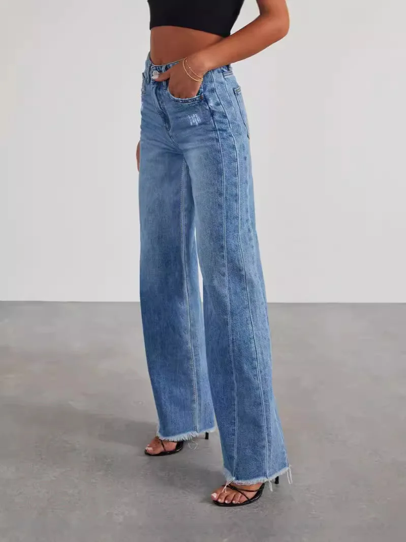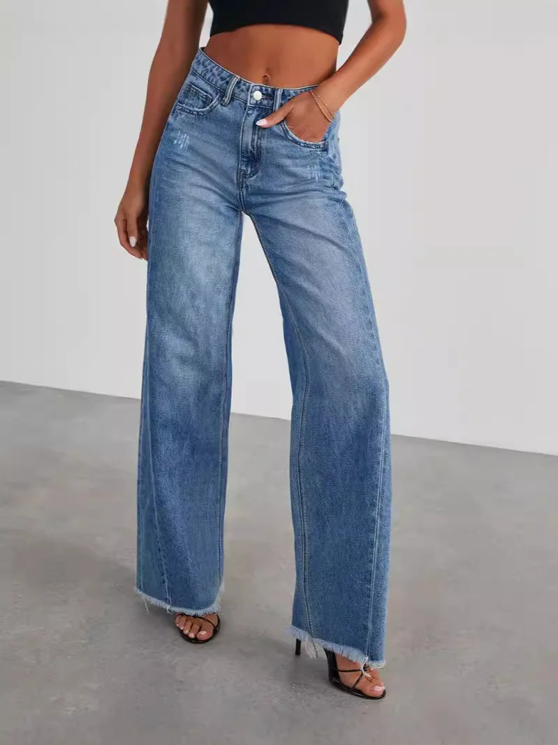 Women's Mid-waist Jeans 2026 European and American Cross-border New Casual Street Loose Wide-leg Wash-furted Jeans for Women